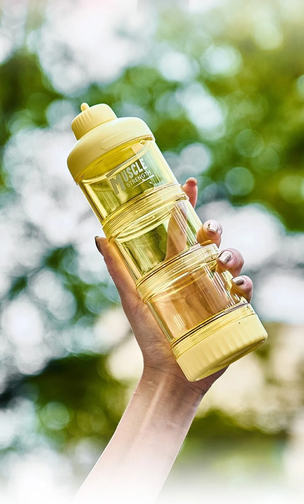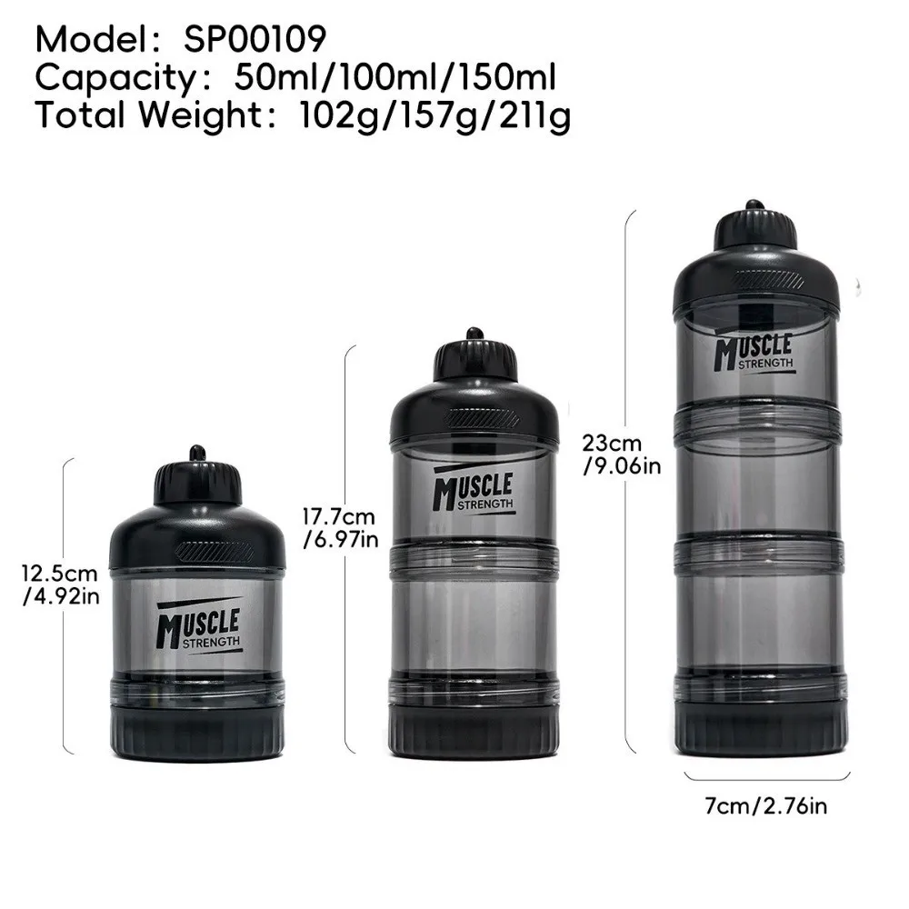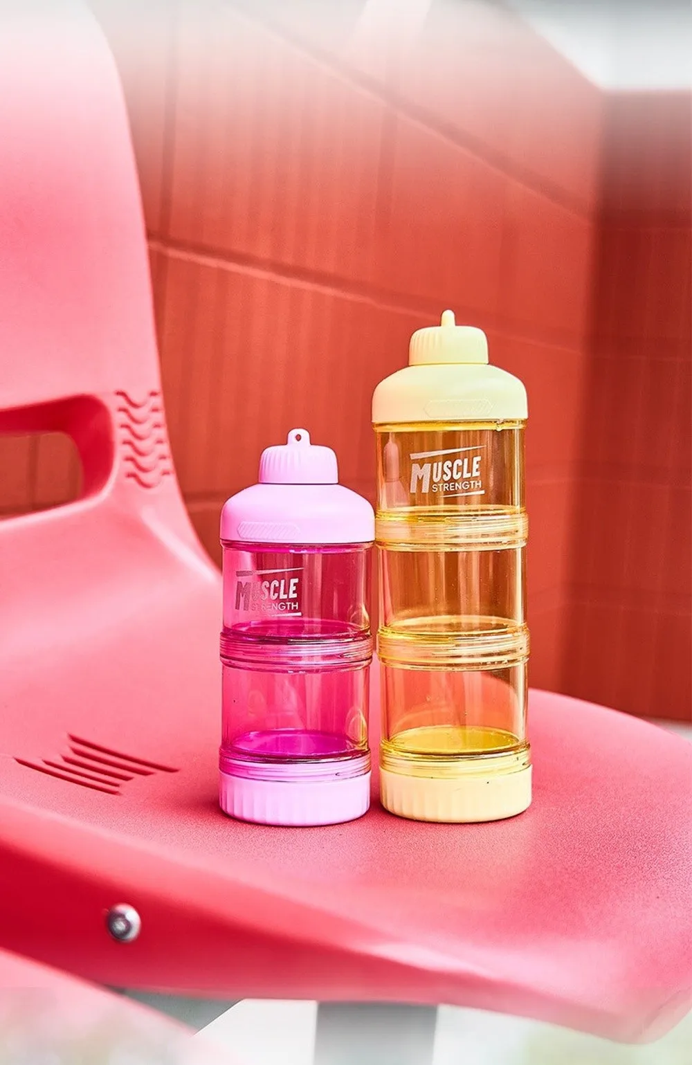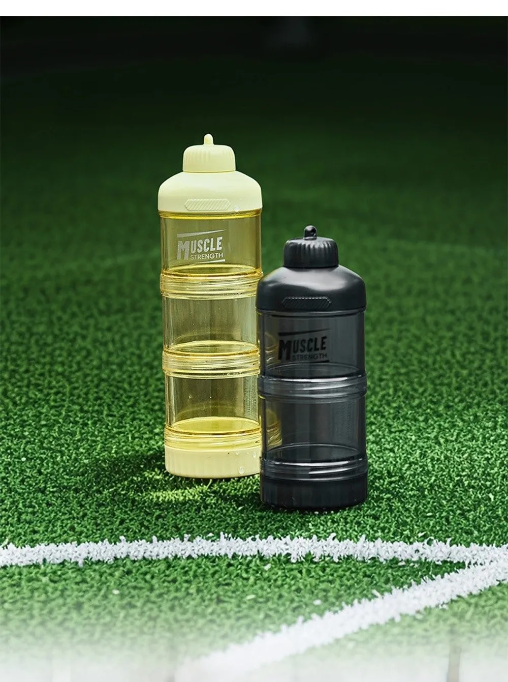 1/2/3 Layer Protein Powder Box Plastic Portable Funnel Fitness Supplement Bottle Durable with Mountaineering Buckle Snack Can