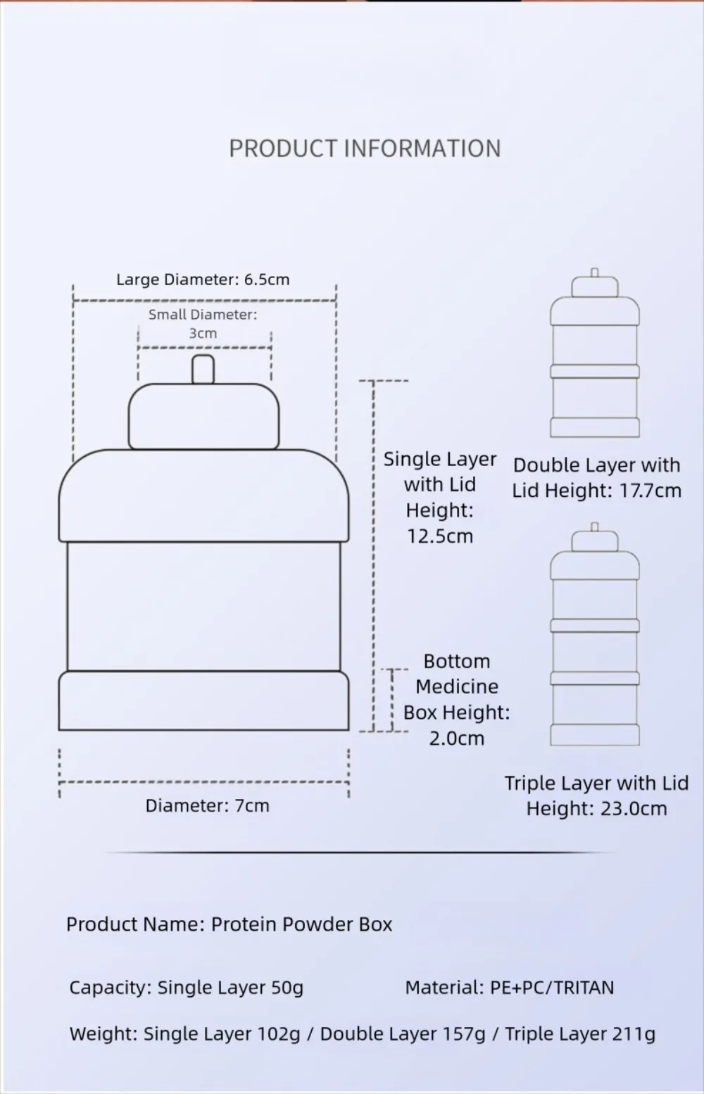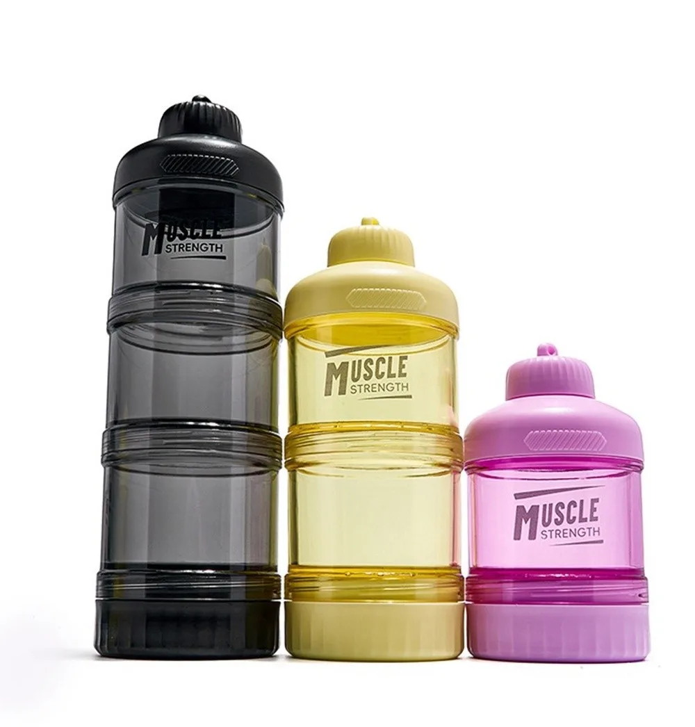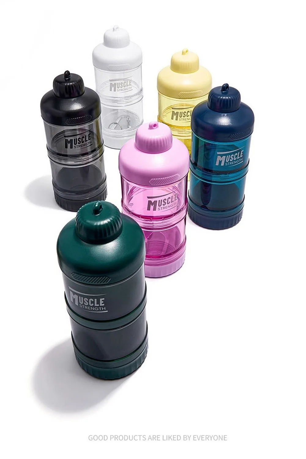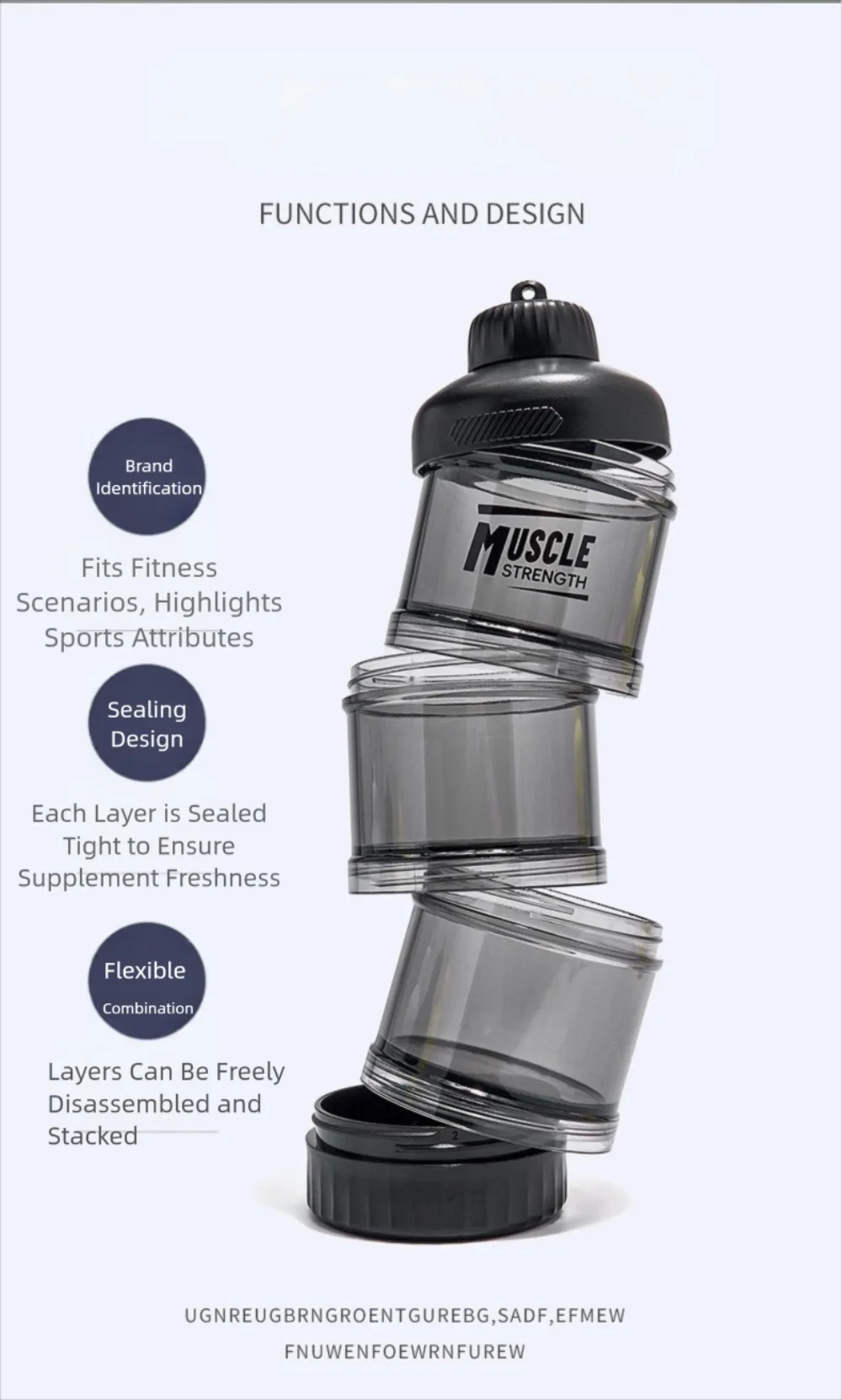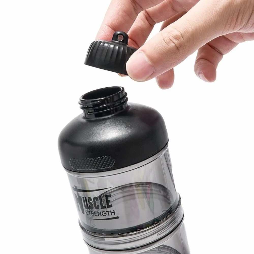 1/2/3 Layer Protein Powder Box Plastic Portable Funnel Fitness Supplement Bottle Durable with Mountaineering Buckle Snack Can