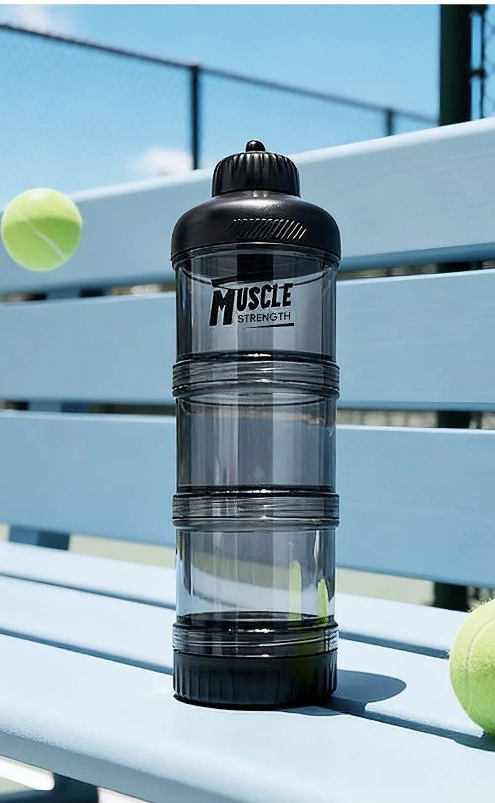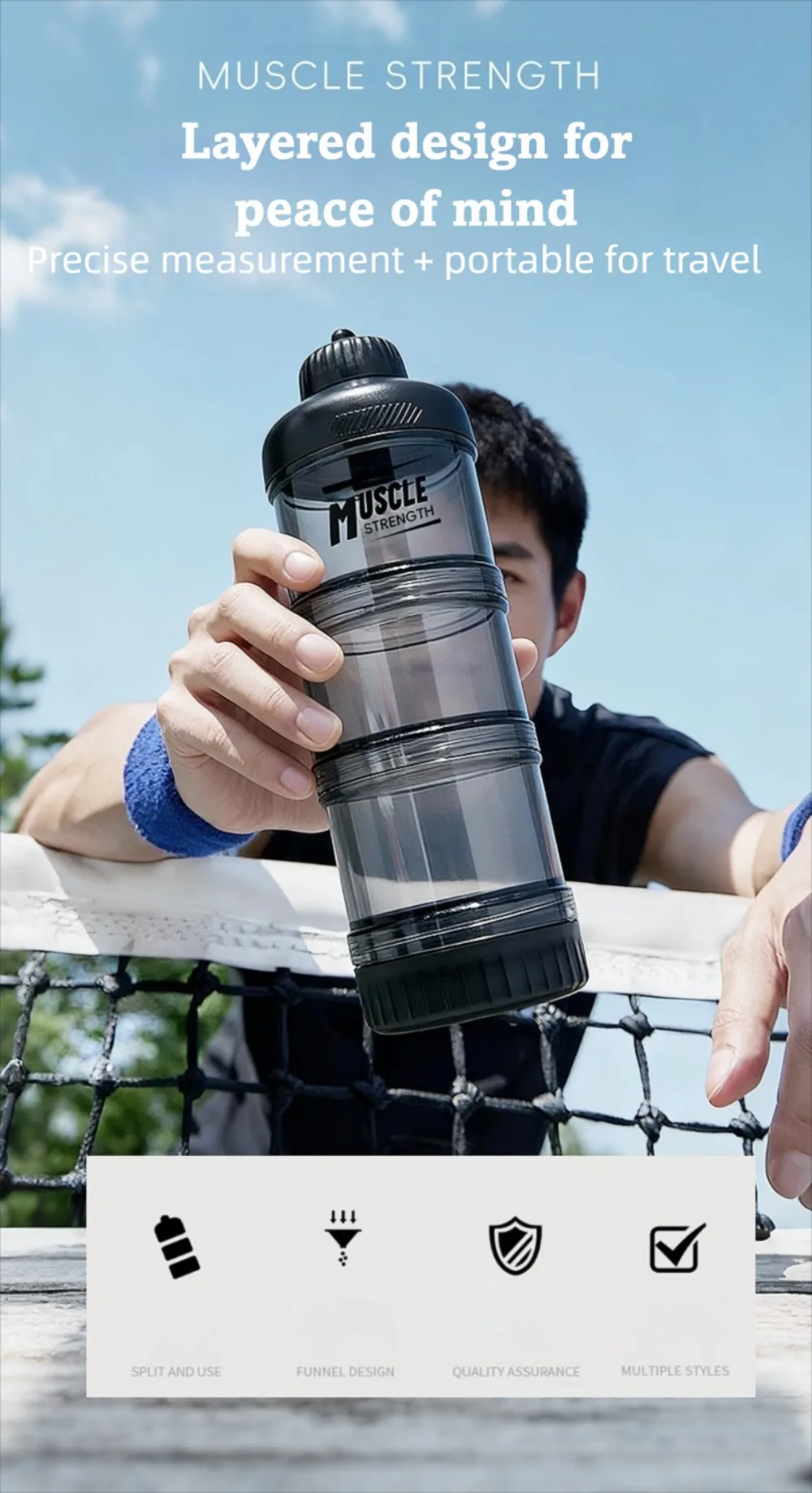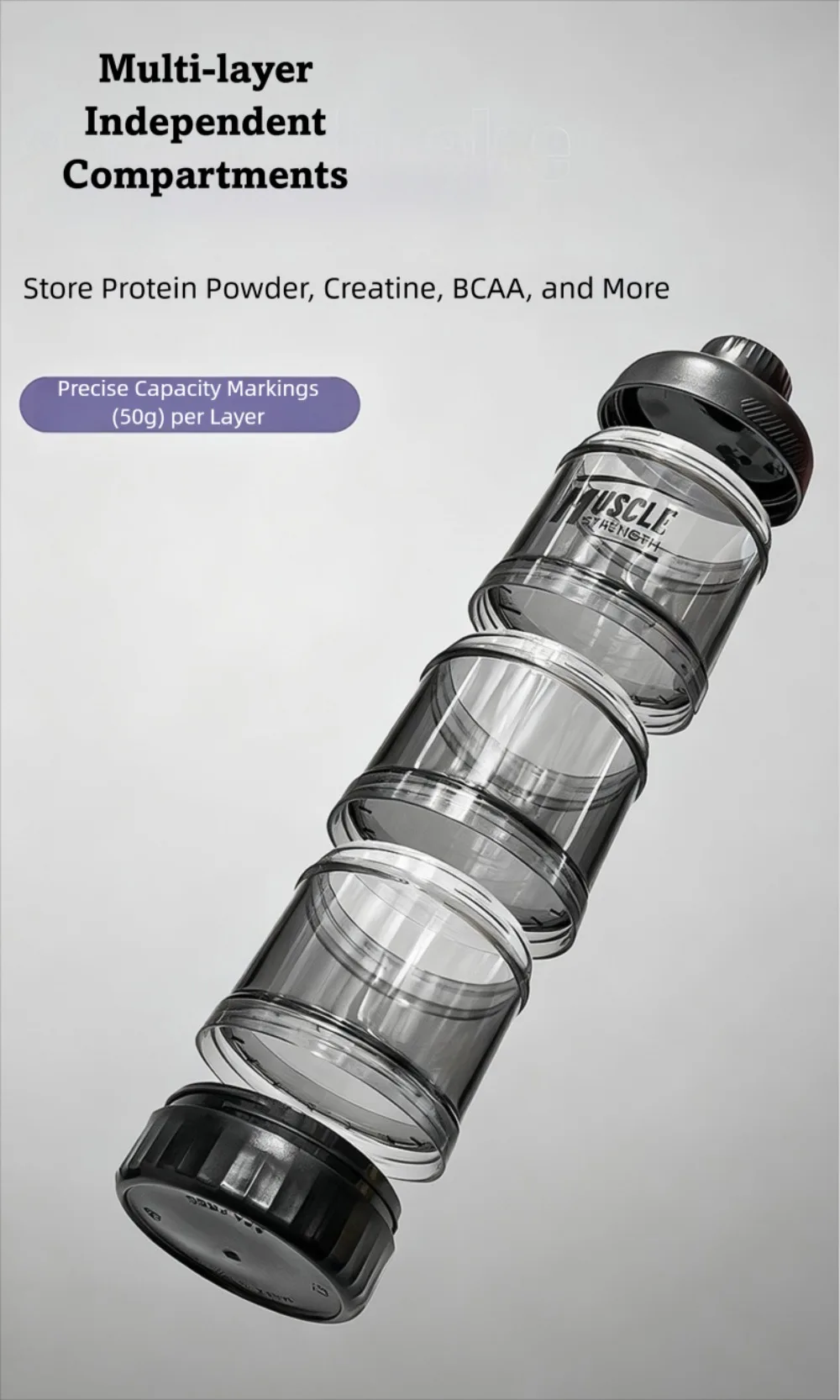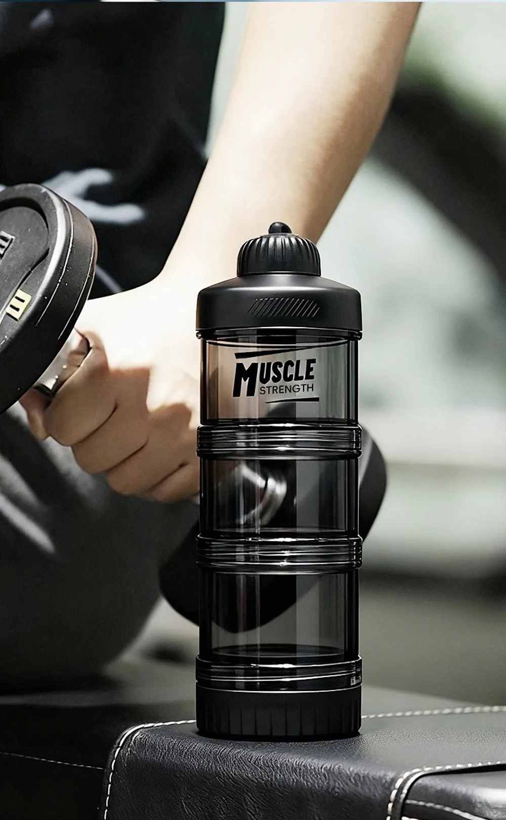 1/2/3 Layer Protein Powder Box Plastic Portable Funnel Fitness Supplement Bottle Durable with Mountaineering Buckle Snack Can