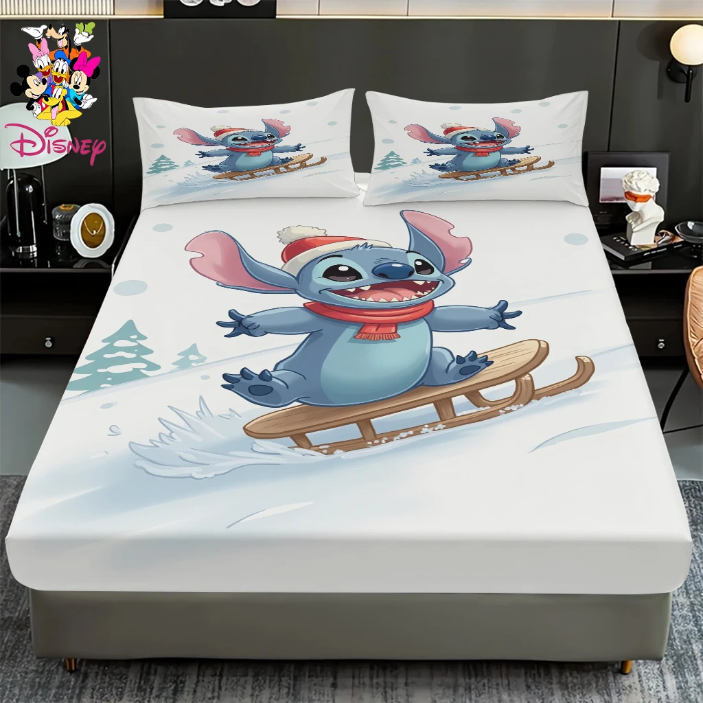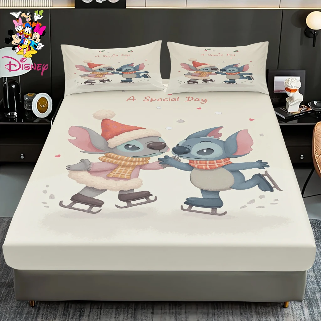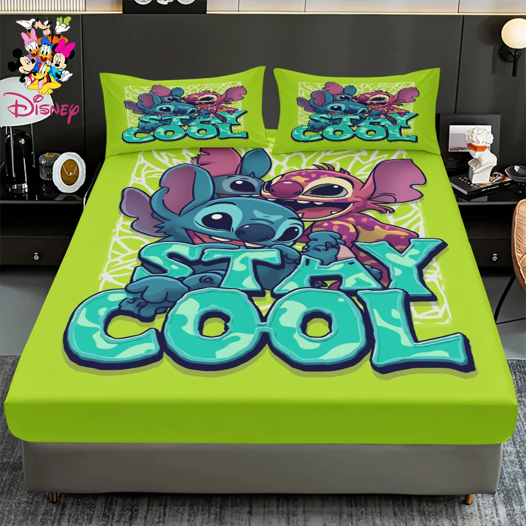 2/3pcs Disney Stitch Chef Fitted Sheet Set 100% Polyester Skin-Friendly & Breathable Bedding Comfortable Cute Soft