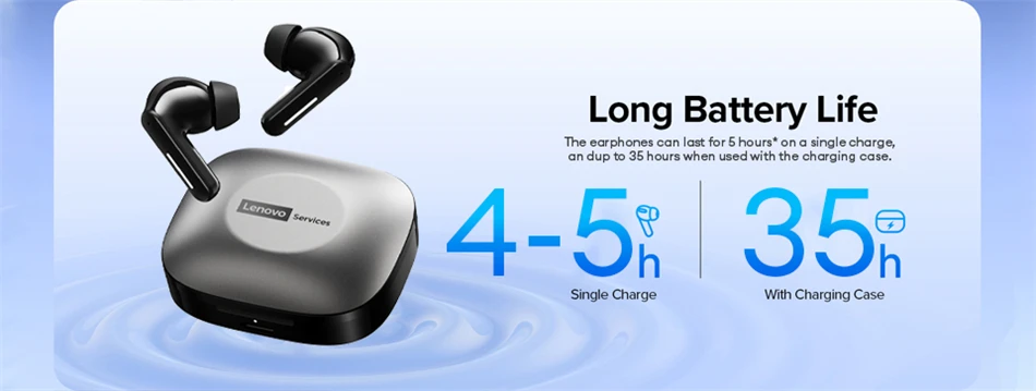 The earphones can last for 5 hours* on a single charge, and up to 35 hours when used with the charging case.