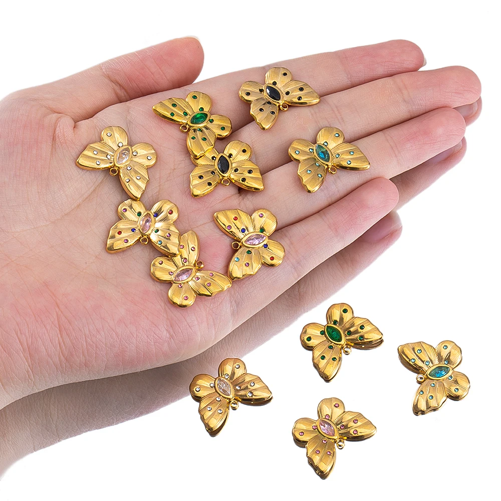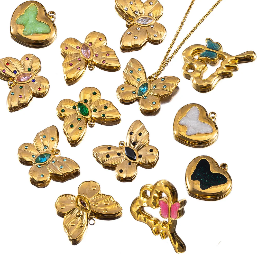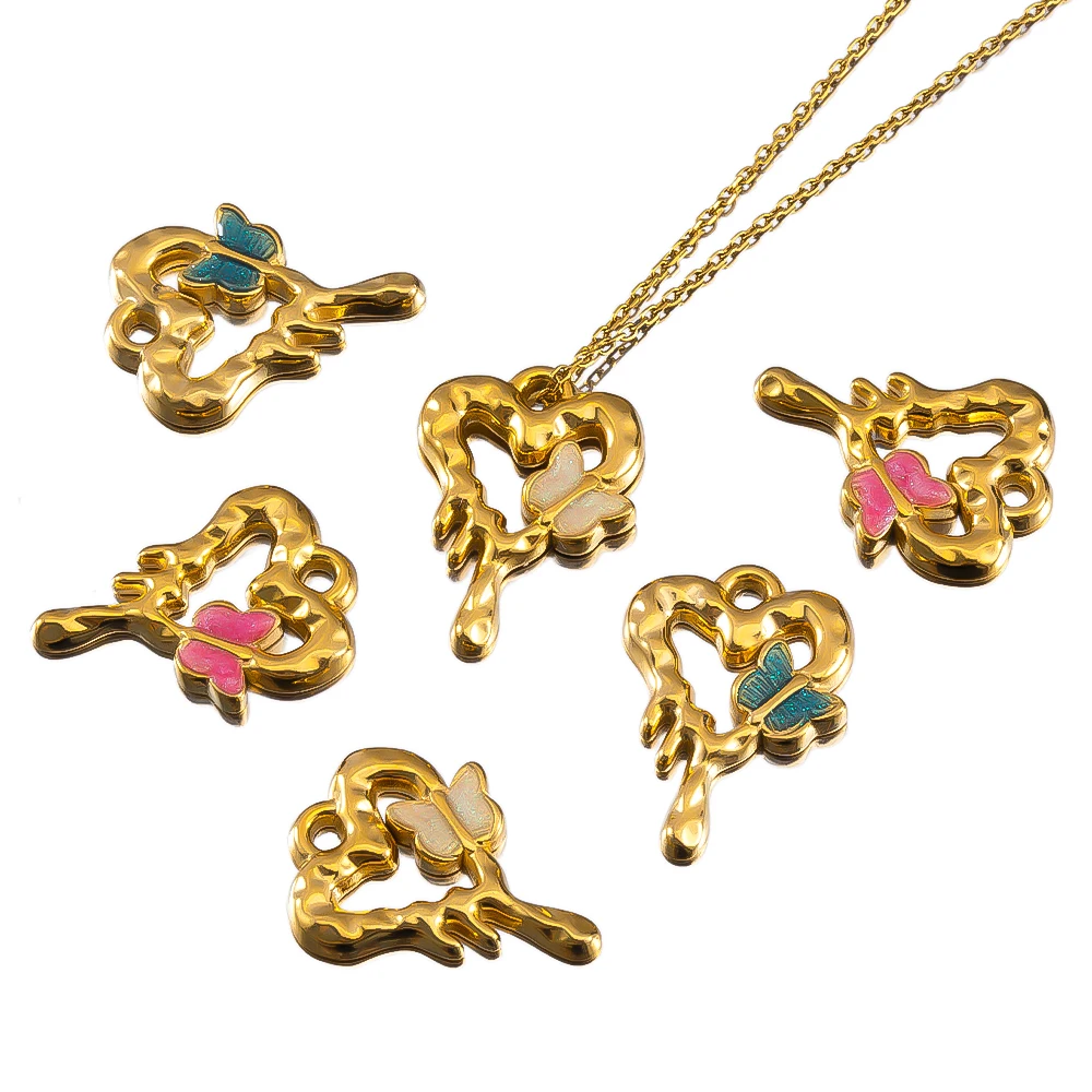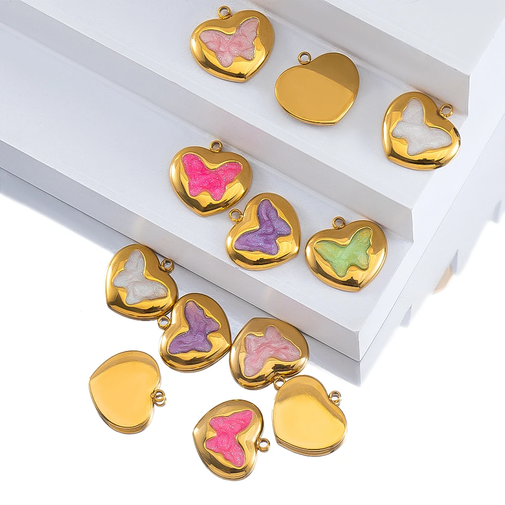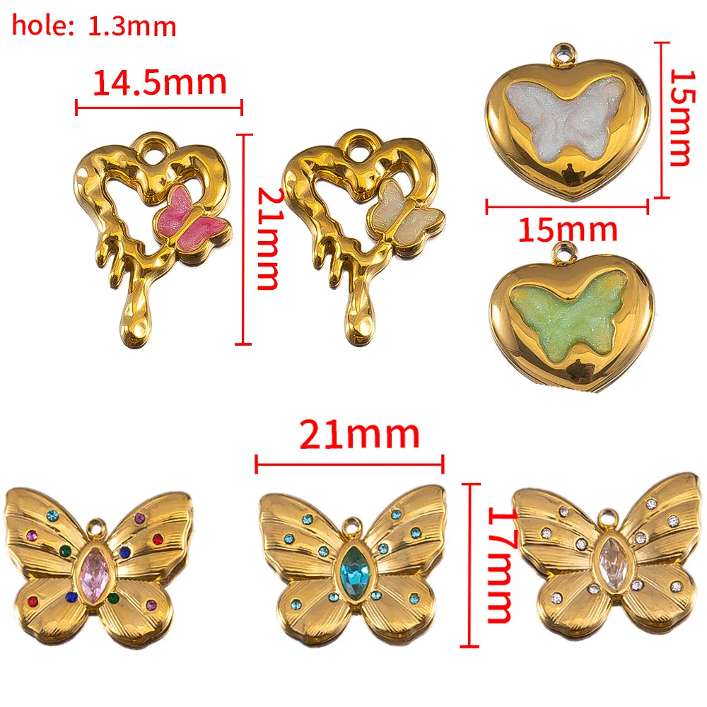2pcs Enamel Butterfly Lava Love Heart Charms 304 Stainless Steel Pendant Base Crystal Bead DIY Jewelry Making Earrings Necklaces