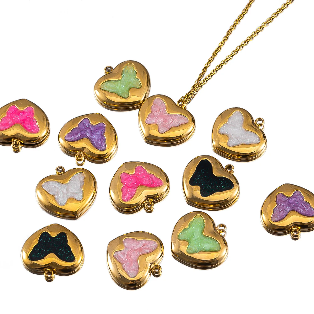 2pcs Enamel Butterfly Lava Love Heart Charms 304 Stainless Steel Pendant Base Crystal Bead DIY Jewelry Making Earrings Necklaces Wholesale