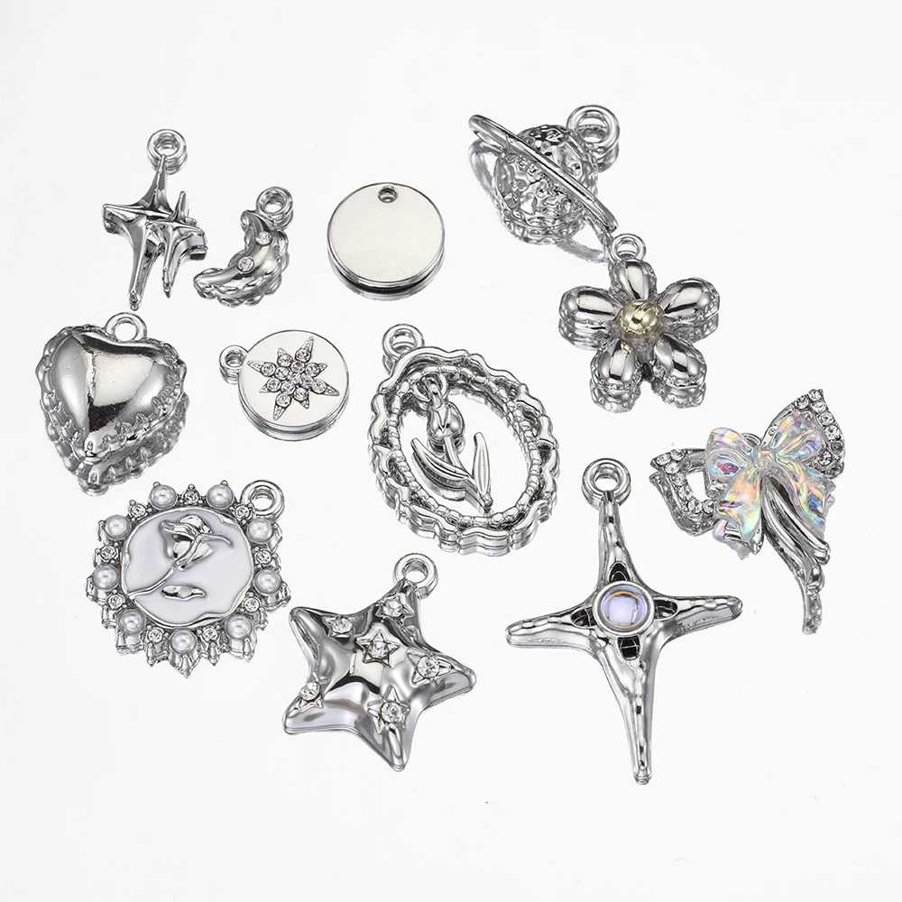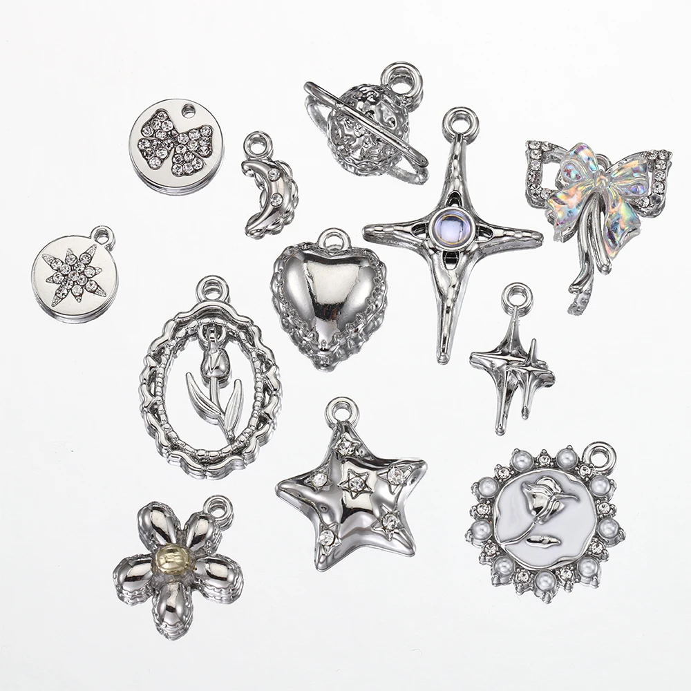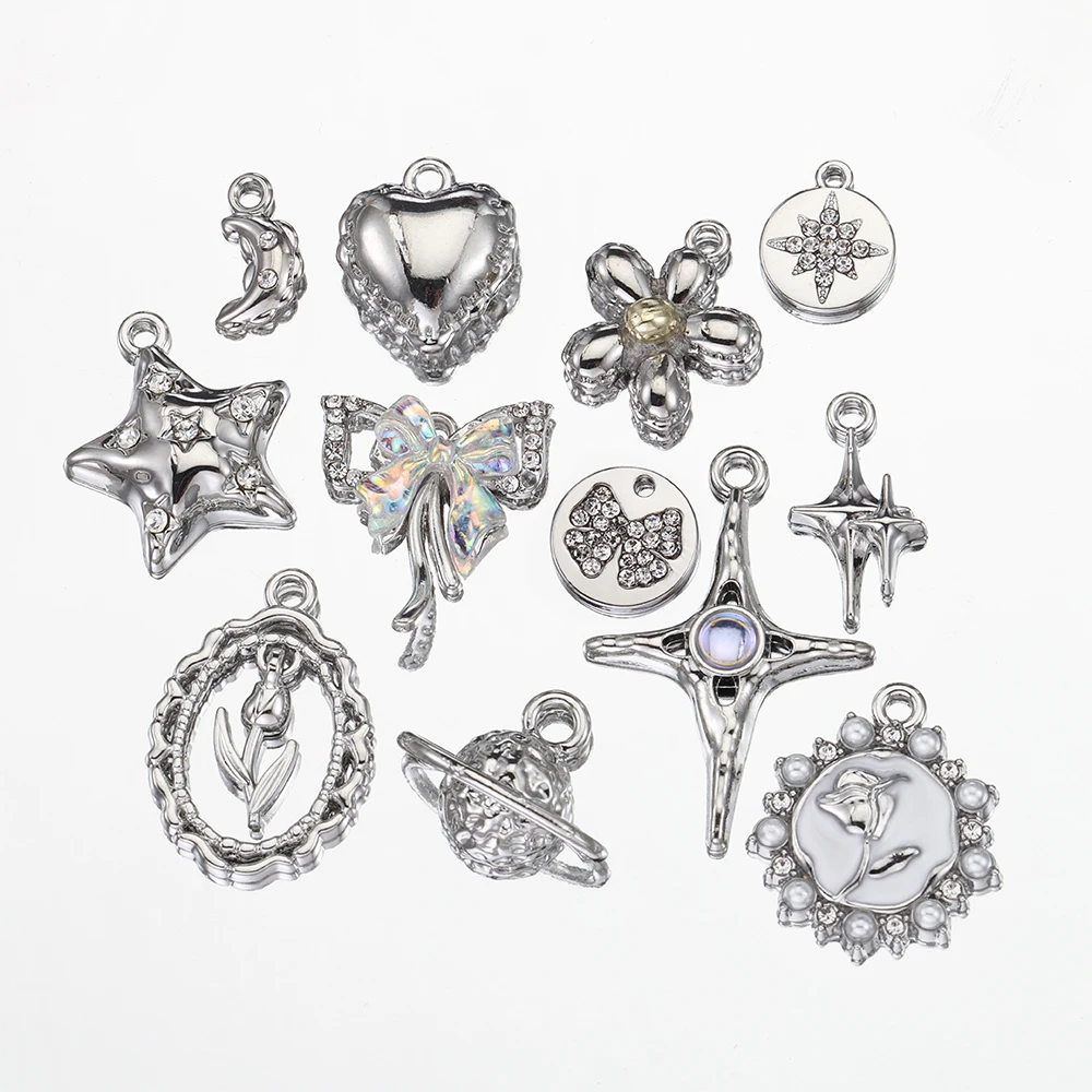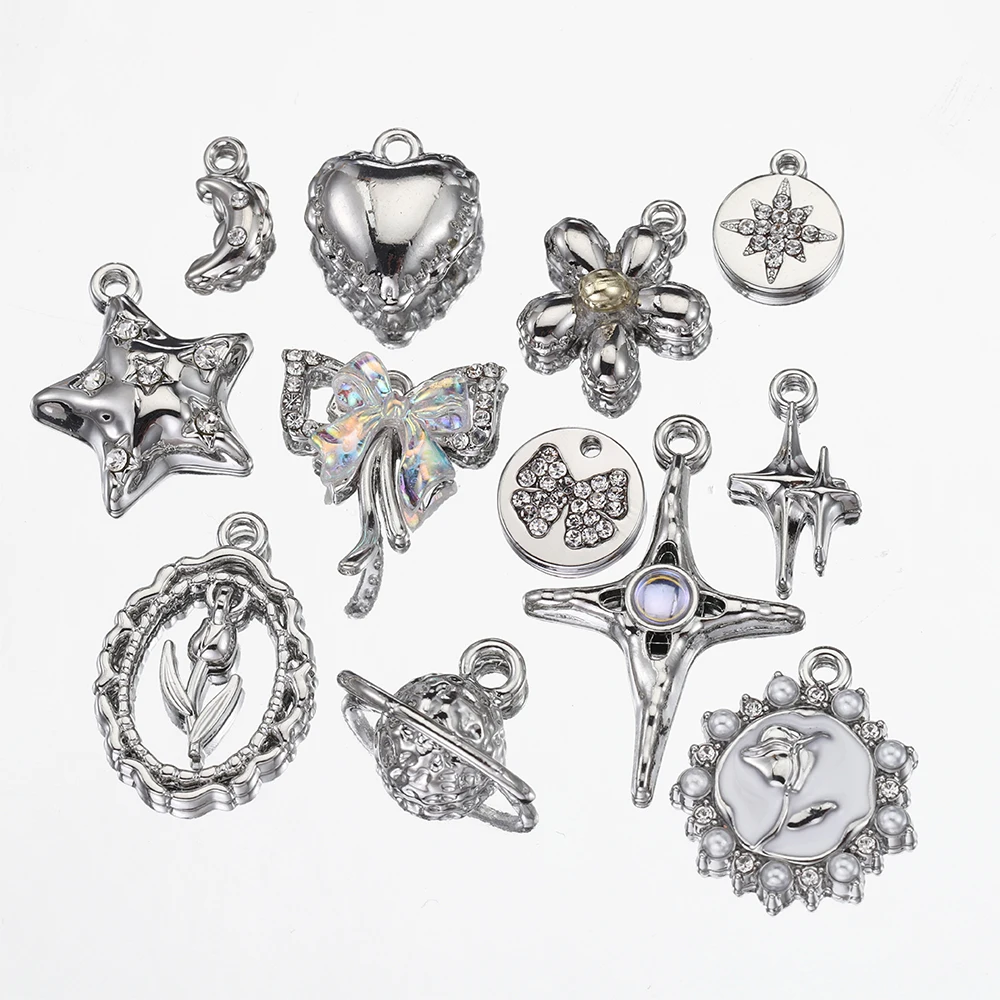2pcs Rhinestone Chrams Silver Color Crystal Beads Pendants Y2K Style Jewelry Making Accessories Charms for DIY Necklace Bracelet