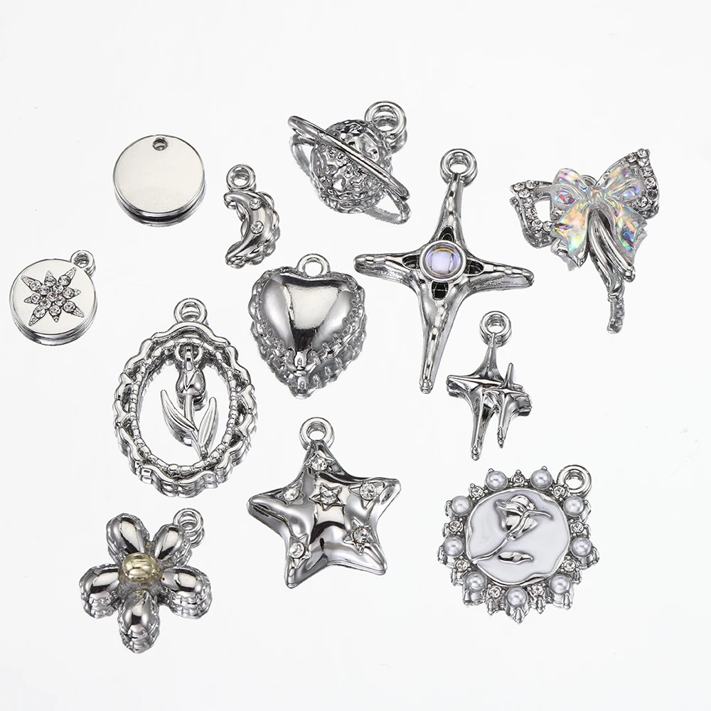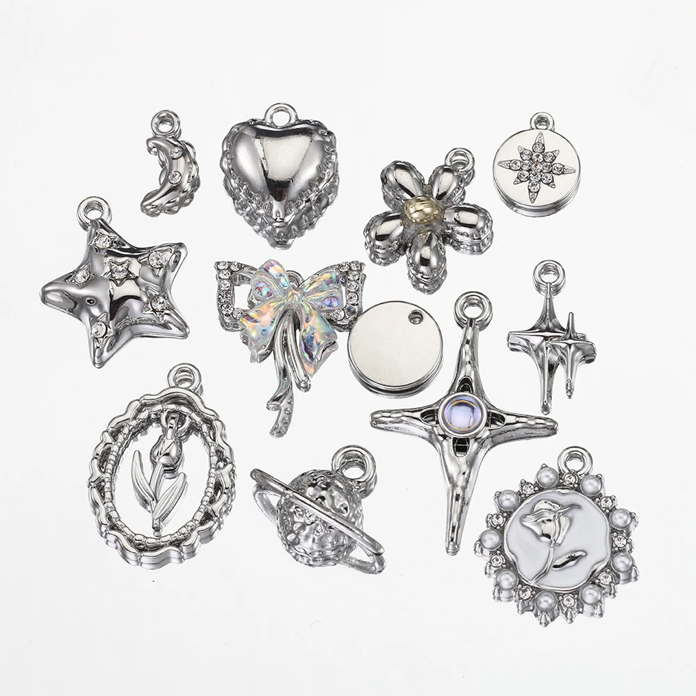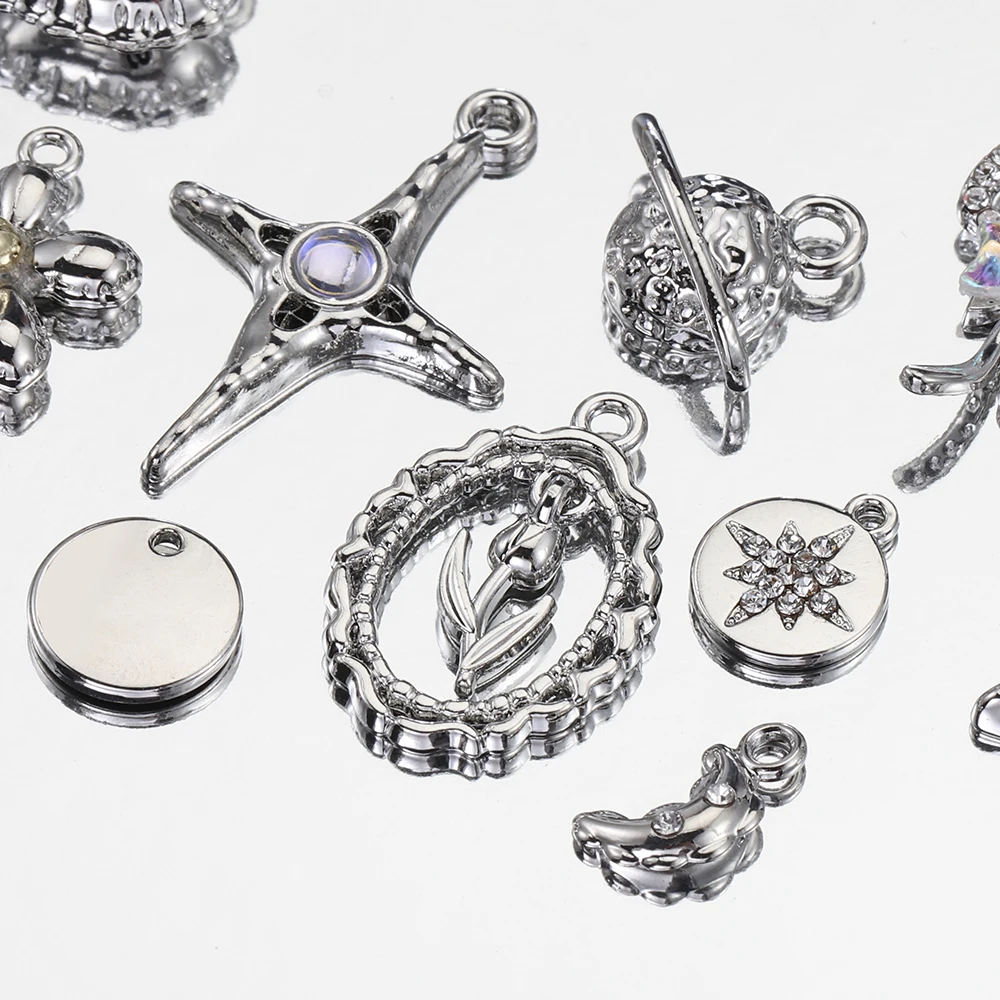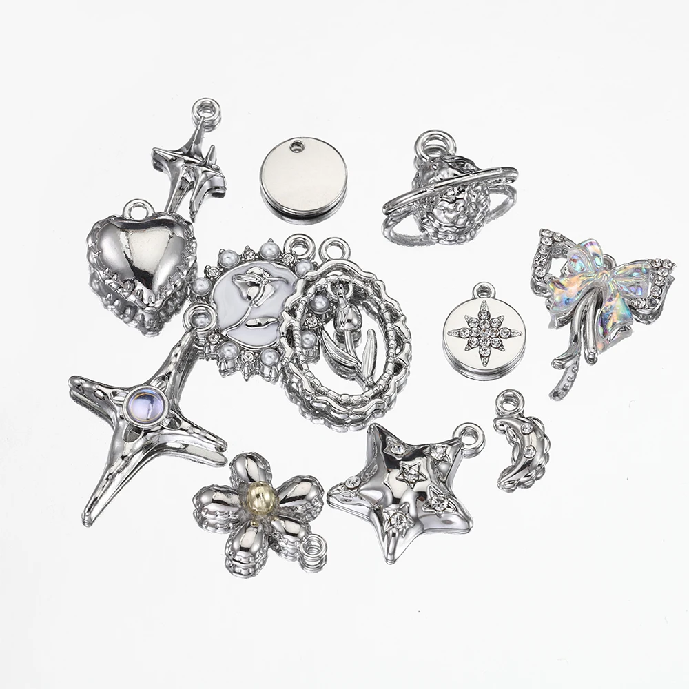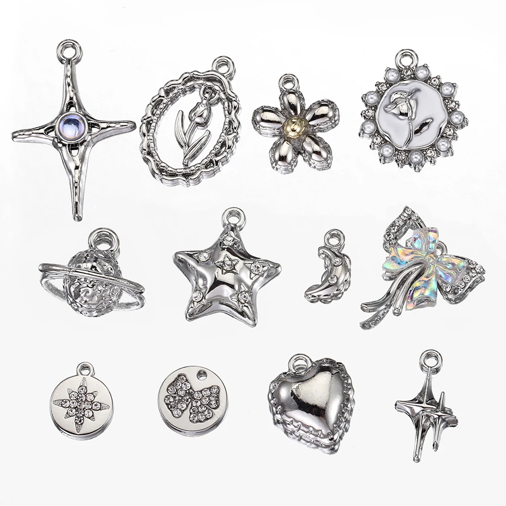 2pcs Rhinestone Chrams Silver Color Crystal Beads Pendants Y2K Style Jewelry Making Accessories Charms for DIY Necklace Bracelet