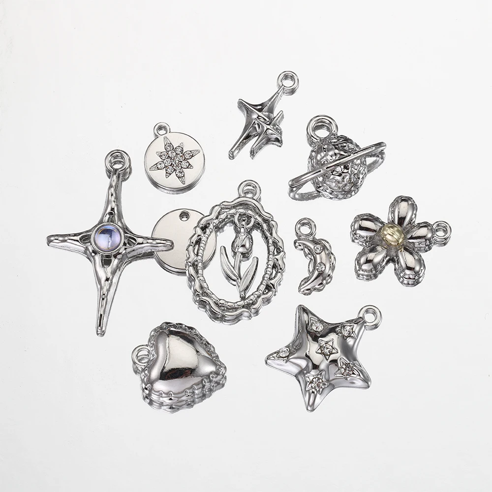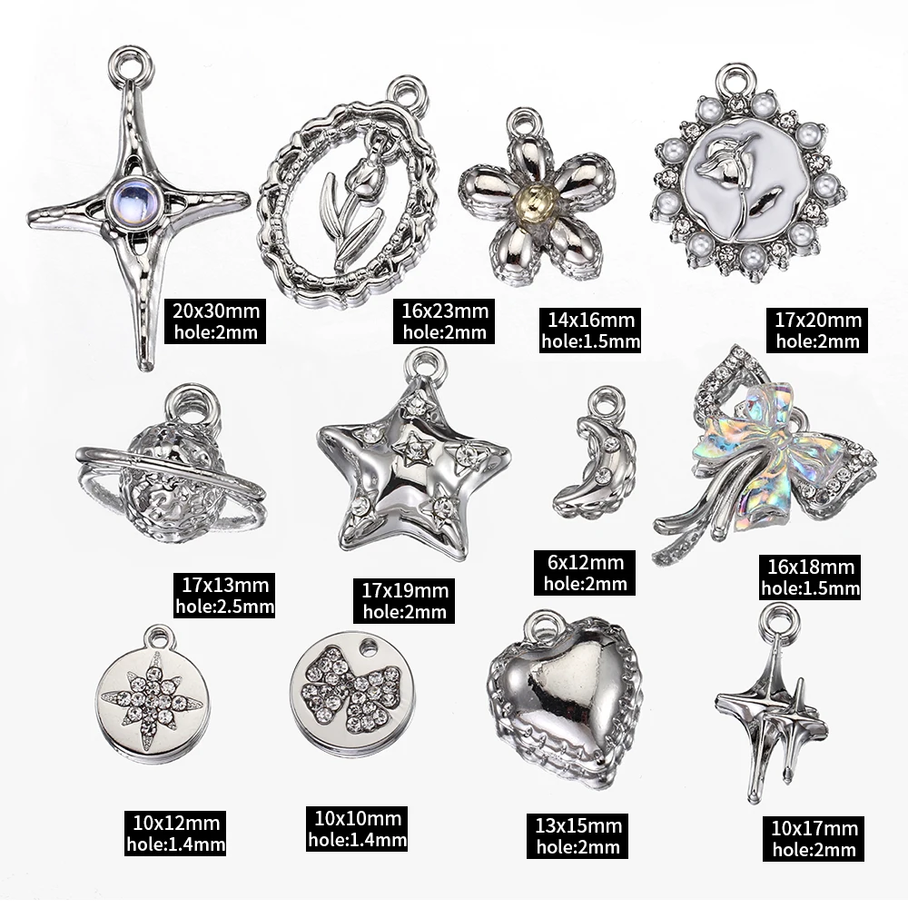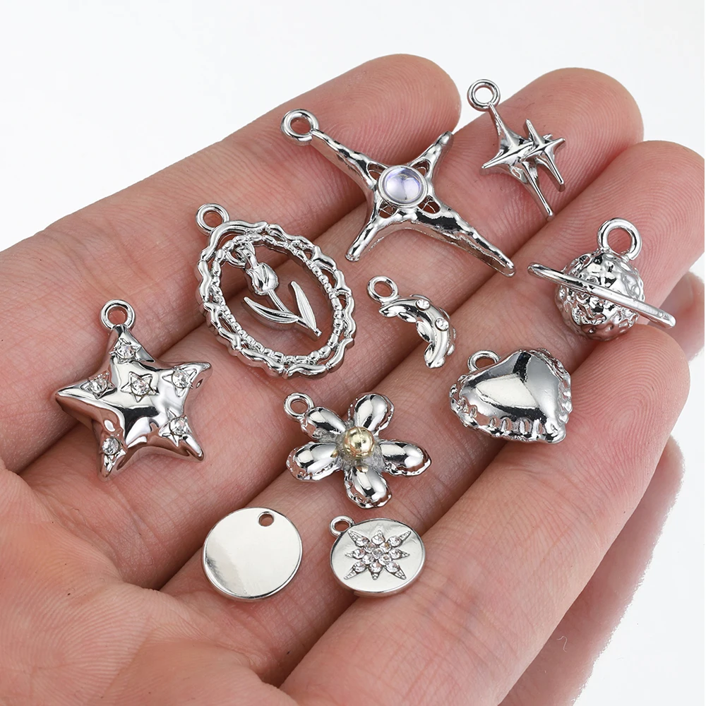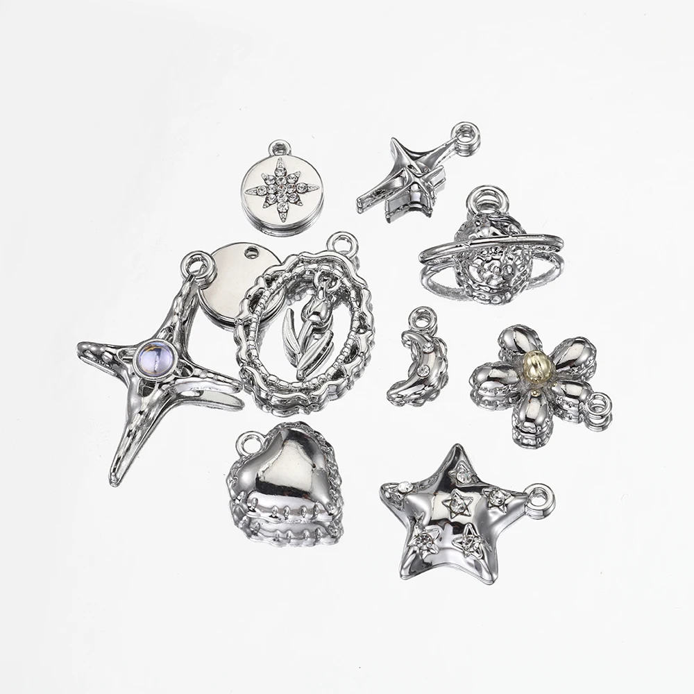 2pcs Rhinestone Chrams Silver Color Crystal Beads Pendants Y2K Style Jewelry Making Accessories Charms for DIY Necklace Bracelet