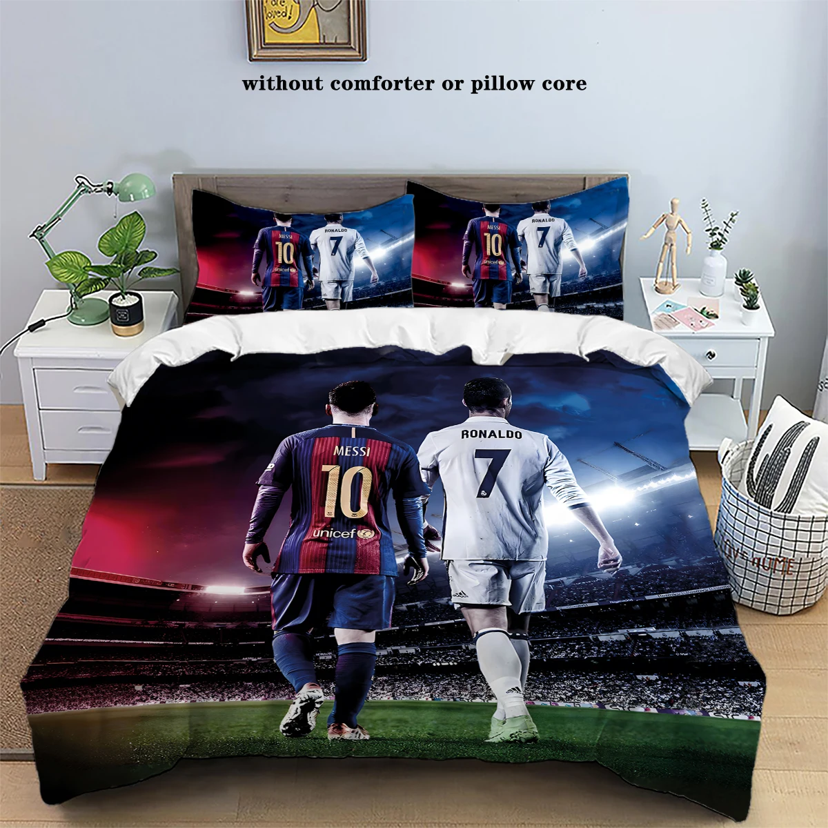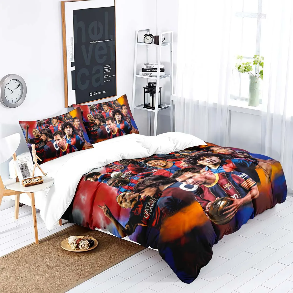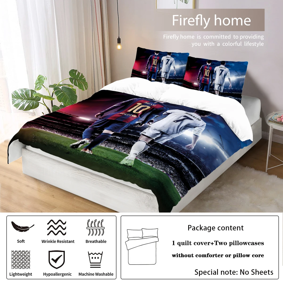 3-Piece Love Football Star Pattern Printed Set (1 duvet cover+2 pillowcases, no core) Soft and Comfortable Bedding Set