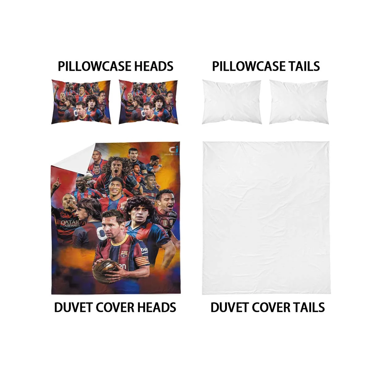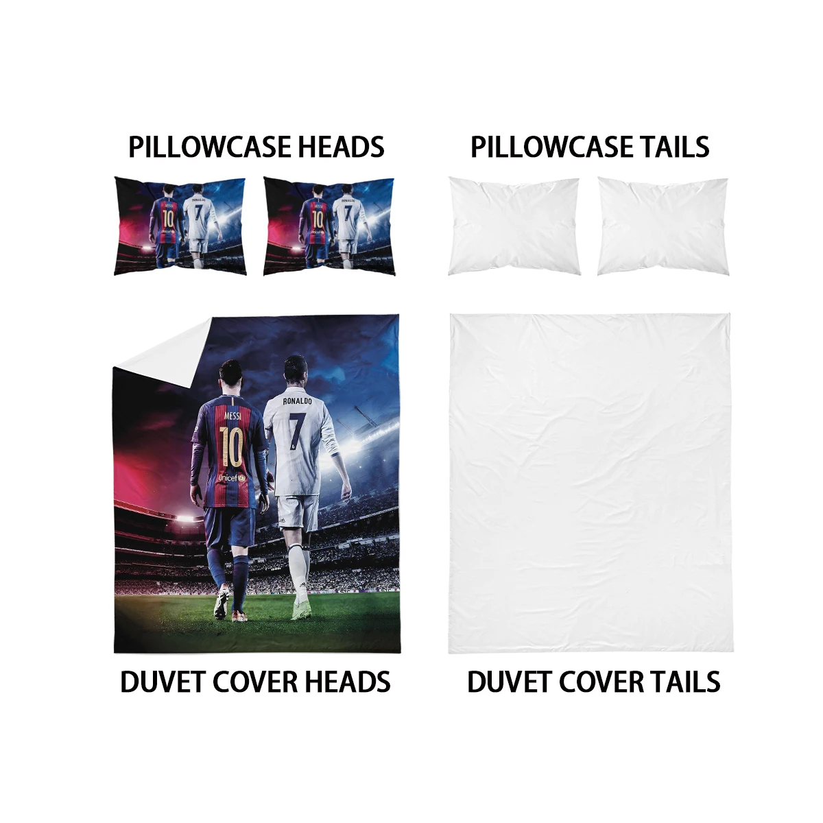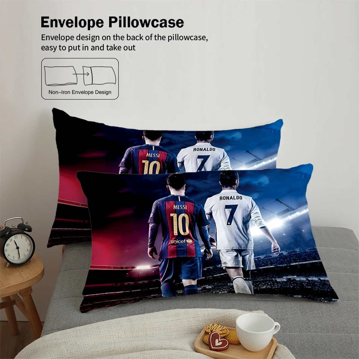 3-Piece Love Football Star Pattern Printed Set (1 duvet cover+2 pillowcases, no core) Soft and Comfortable Bedding Set