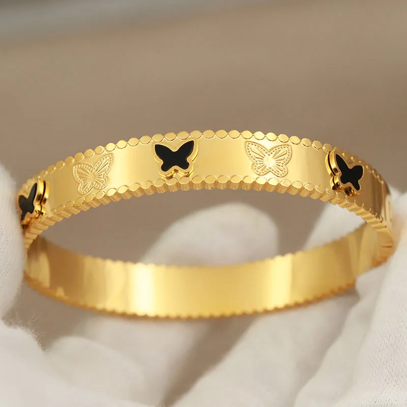 316L Classic Stainless Steel Metal Butterfly Bracelet for Women Elegant Bangles Rust-proof Bangle Wrist Jewelry
