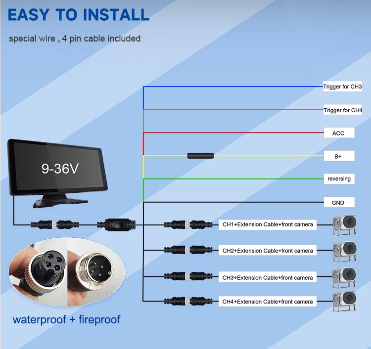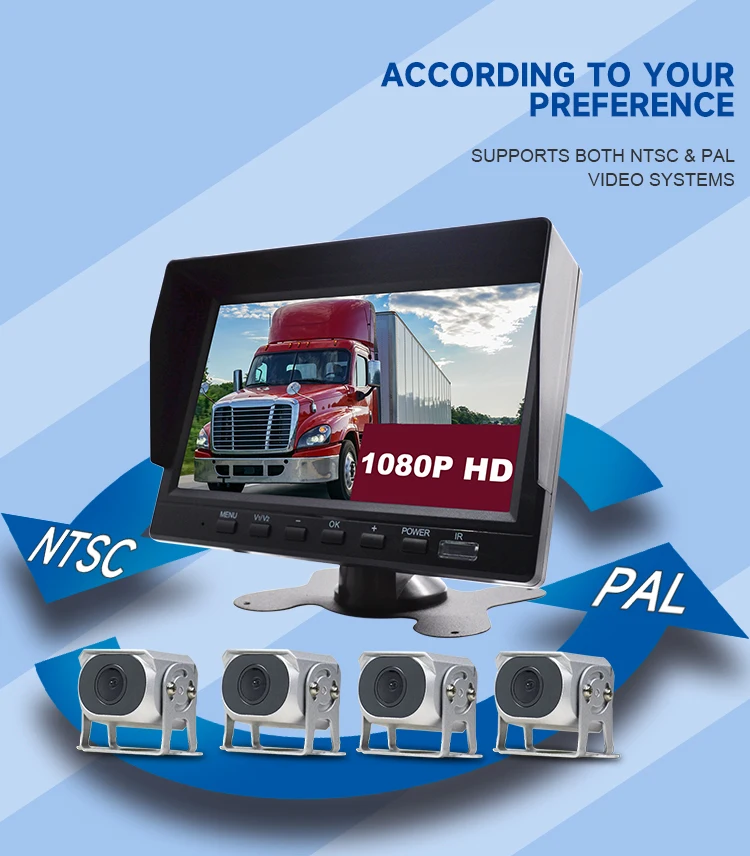 4 CH Car Reversing Aid System 9 Inch IPS Screen Monitor Kit Truck Park Security Night Vision RV Security Camera System