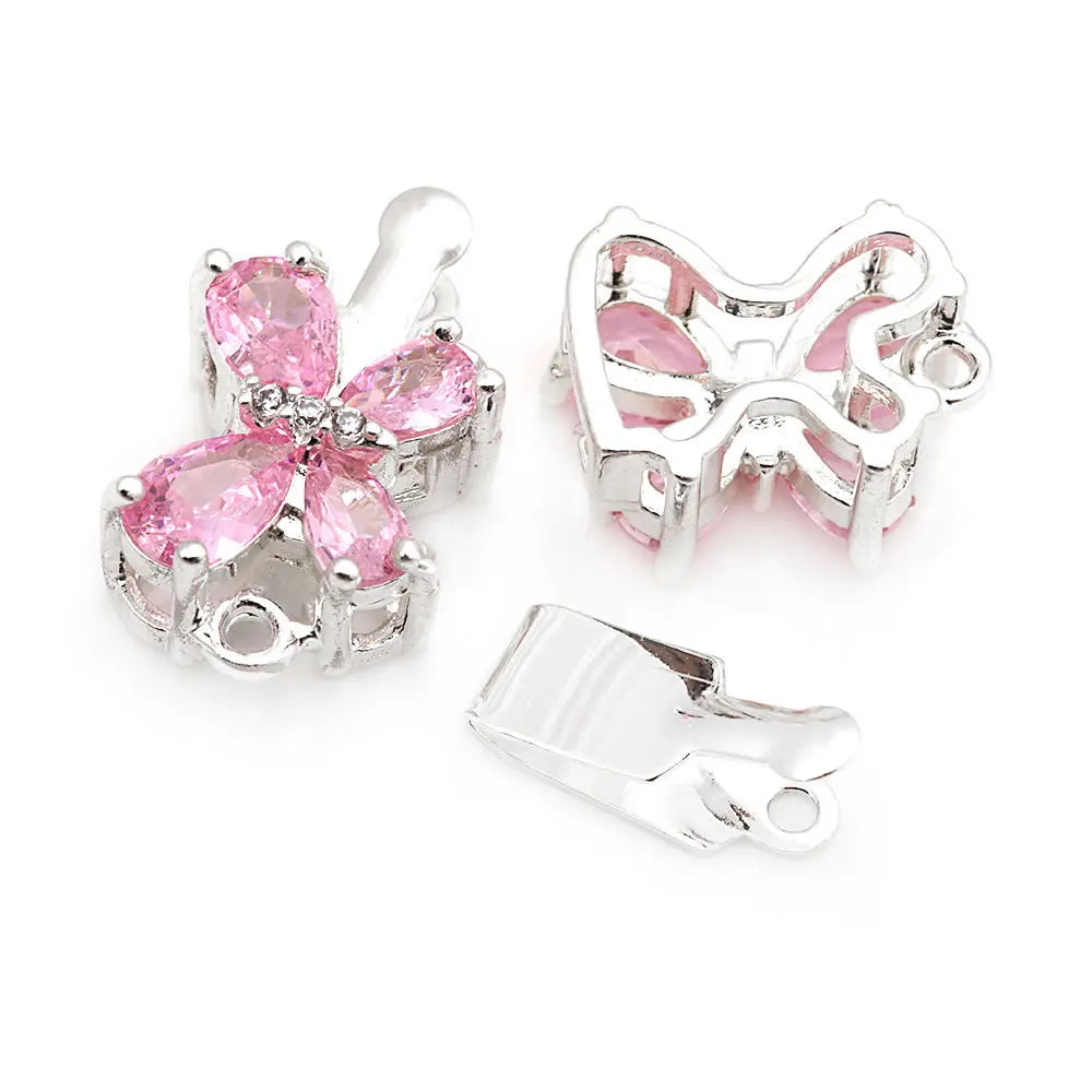 4 Sets 18K Gold Color Brass and Zircon Butterfly 1 Line and 2 Line Necklaces Connect Clasps Diy Jewelry Making Accessories