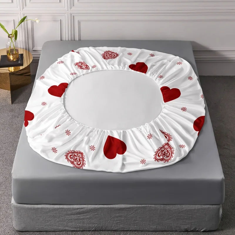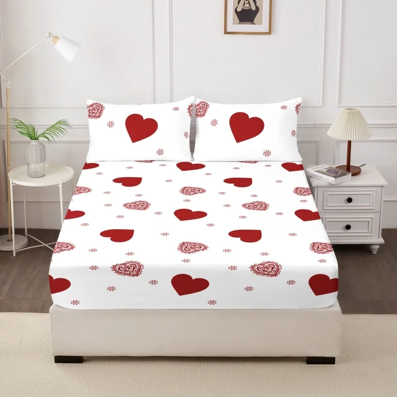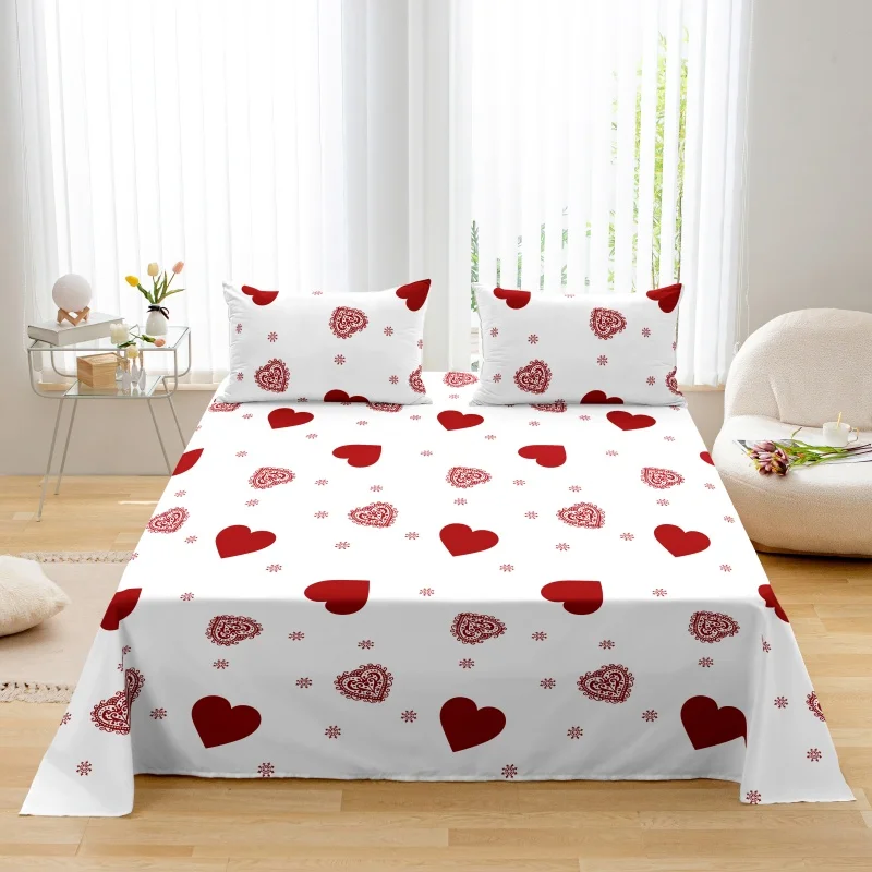 4pcs heart symbol brushed Fitted sheet+flat sheet+pillowcase set skin friendly breathable Queen Size Flat bed sheet Pillowcases