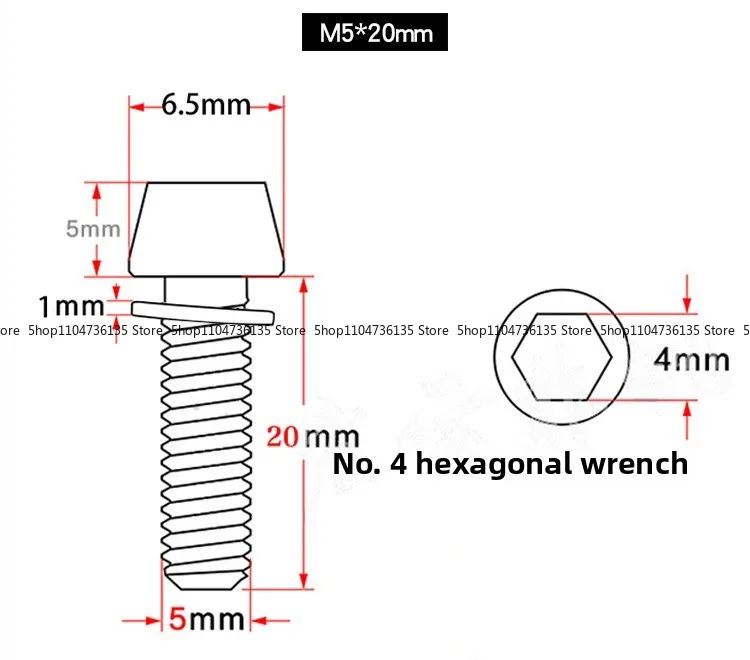 6pcs Mountain Bike Road Bike M5 Inner Hexagon Handle Vertical Screws, High Stainless Steel Handlebar Screw Accessories