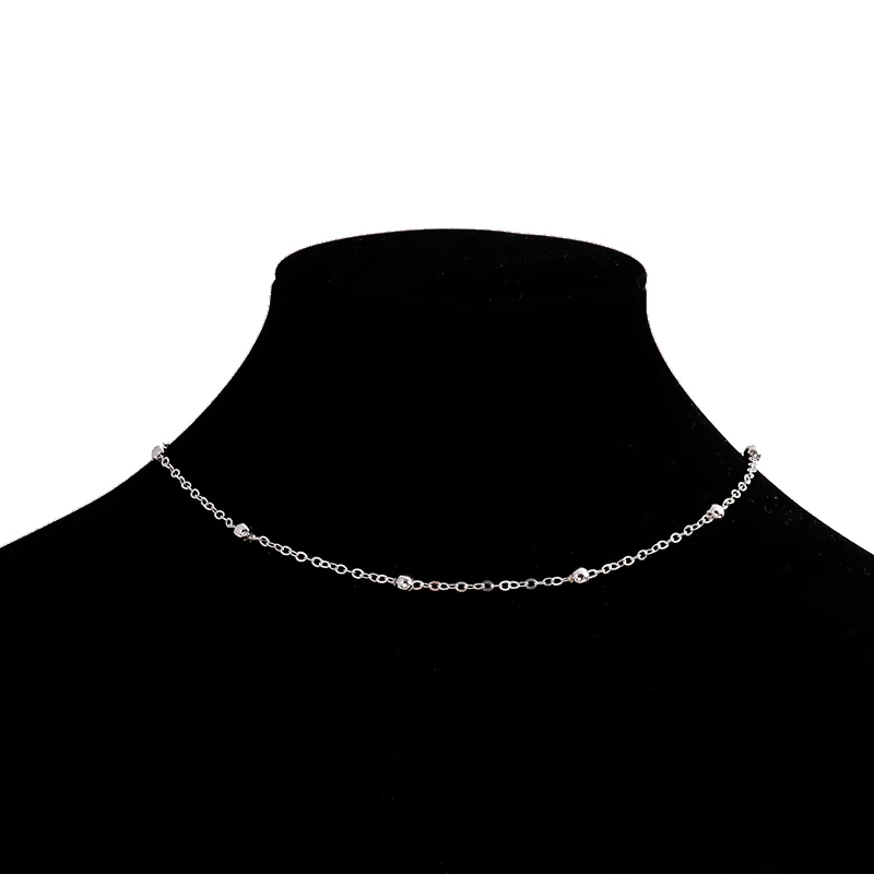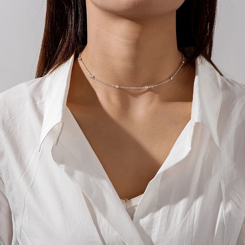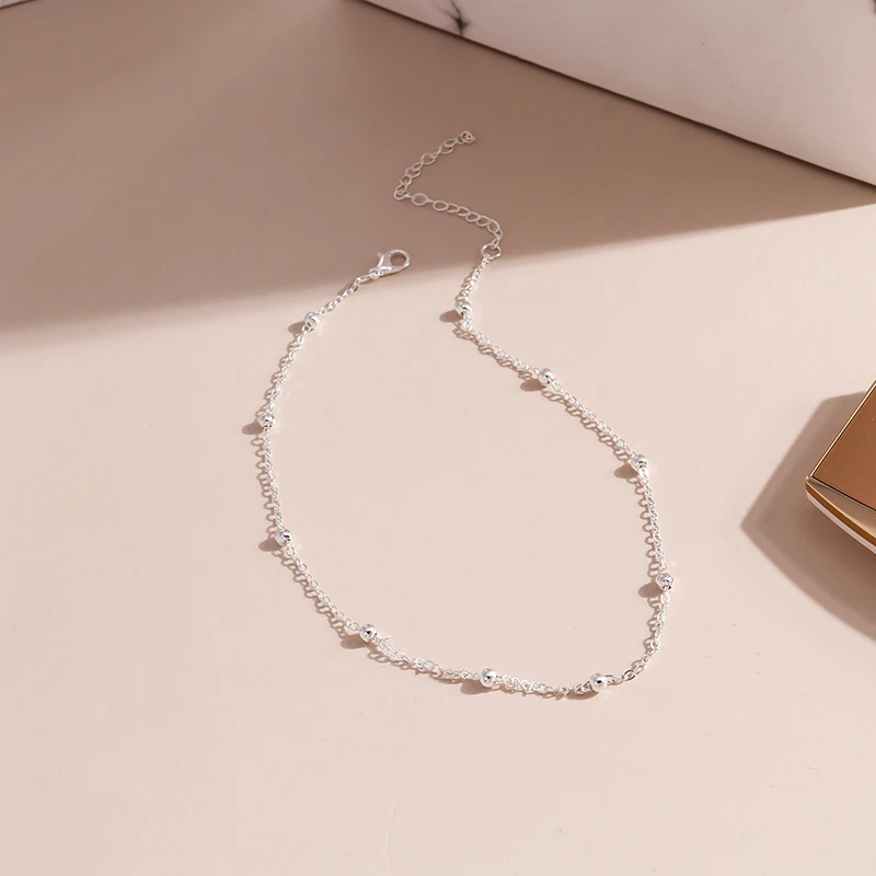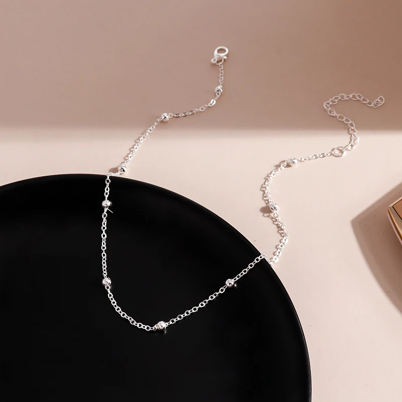 Aihua Simple Copper Beads Chain Choker Necklace for Women Men Kpop Fashion Silver Color Small Ball Short Clavicle Chain Necklace
