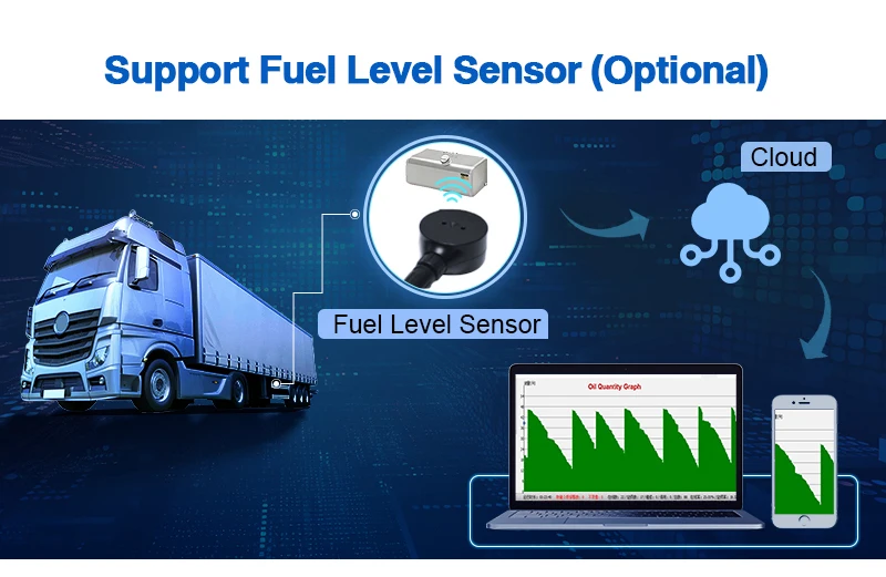 CareDrive MR910-360B's fuel level sensor utilizes an ultrasonic probe to accurately detect the fuel level height. The built-in program in the controller's box smartly processes the height signals of fuel quantity, then MDVR sends the fuel height data to the platform for analysis and generates a comprehensive fuel quantity report.