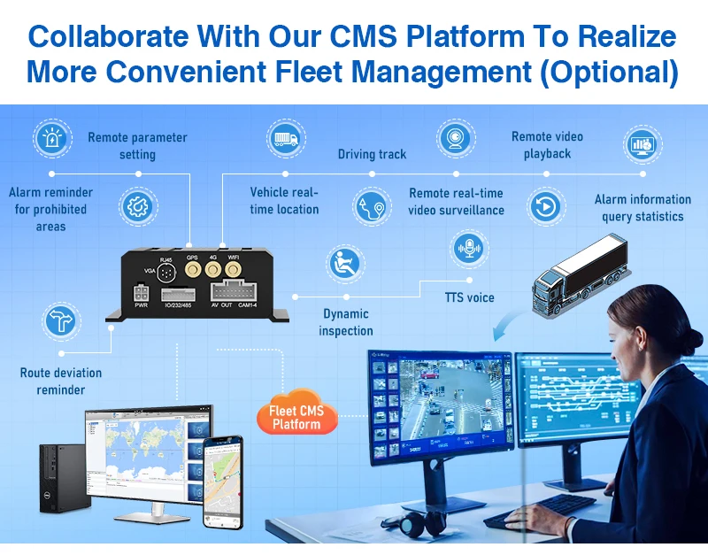 A: Yes, there is a CMS platform for real-time video monitoring, alarm information query, vehicle real-time positioning, etc.