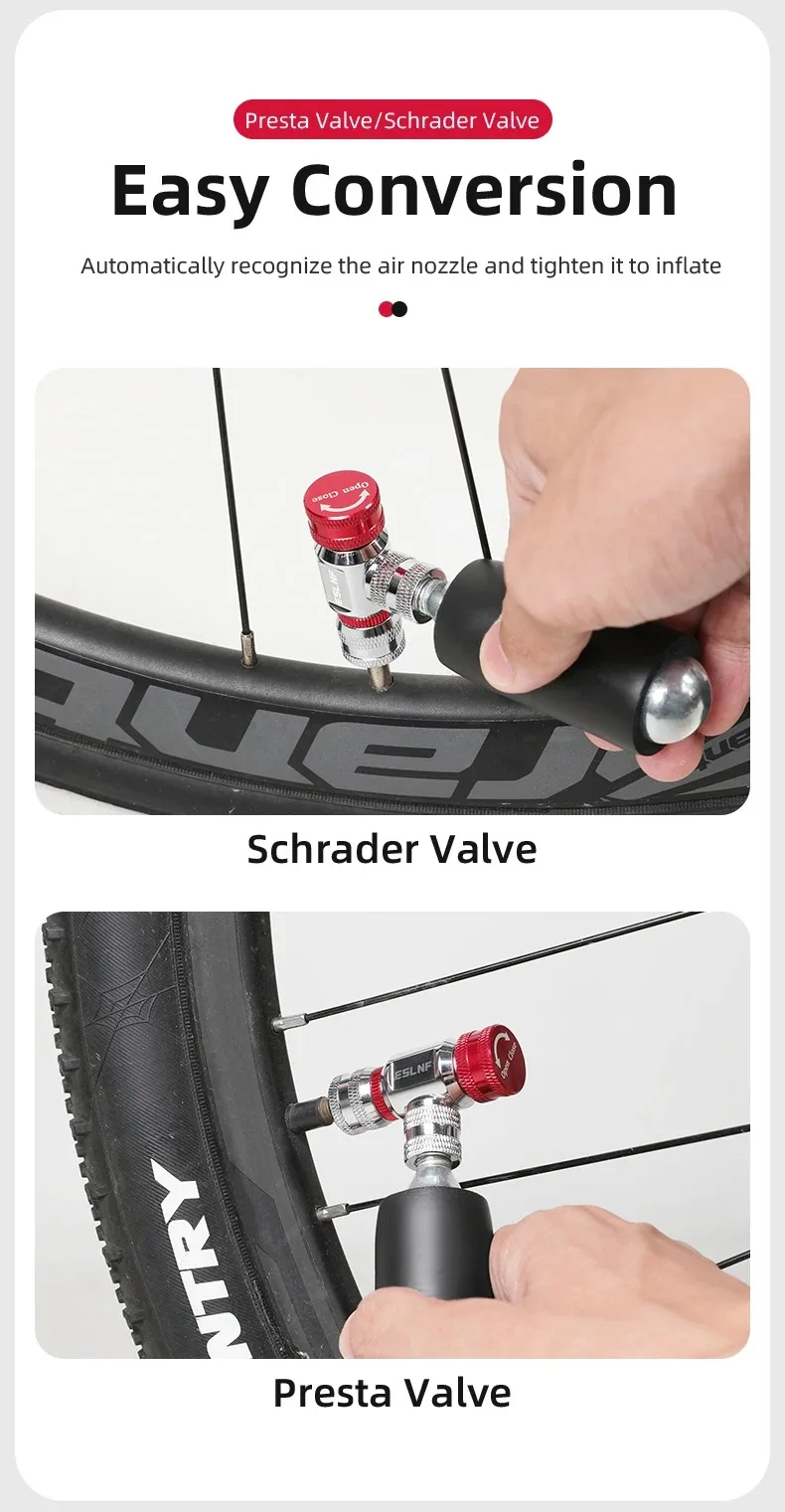 Mini Bicycle CO2 Pump Portable Tire Inflator For Schrader Presta Adapter MTB Road Bike Aluminum Alloy Automatic Pum