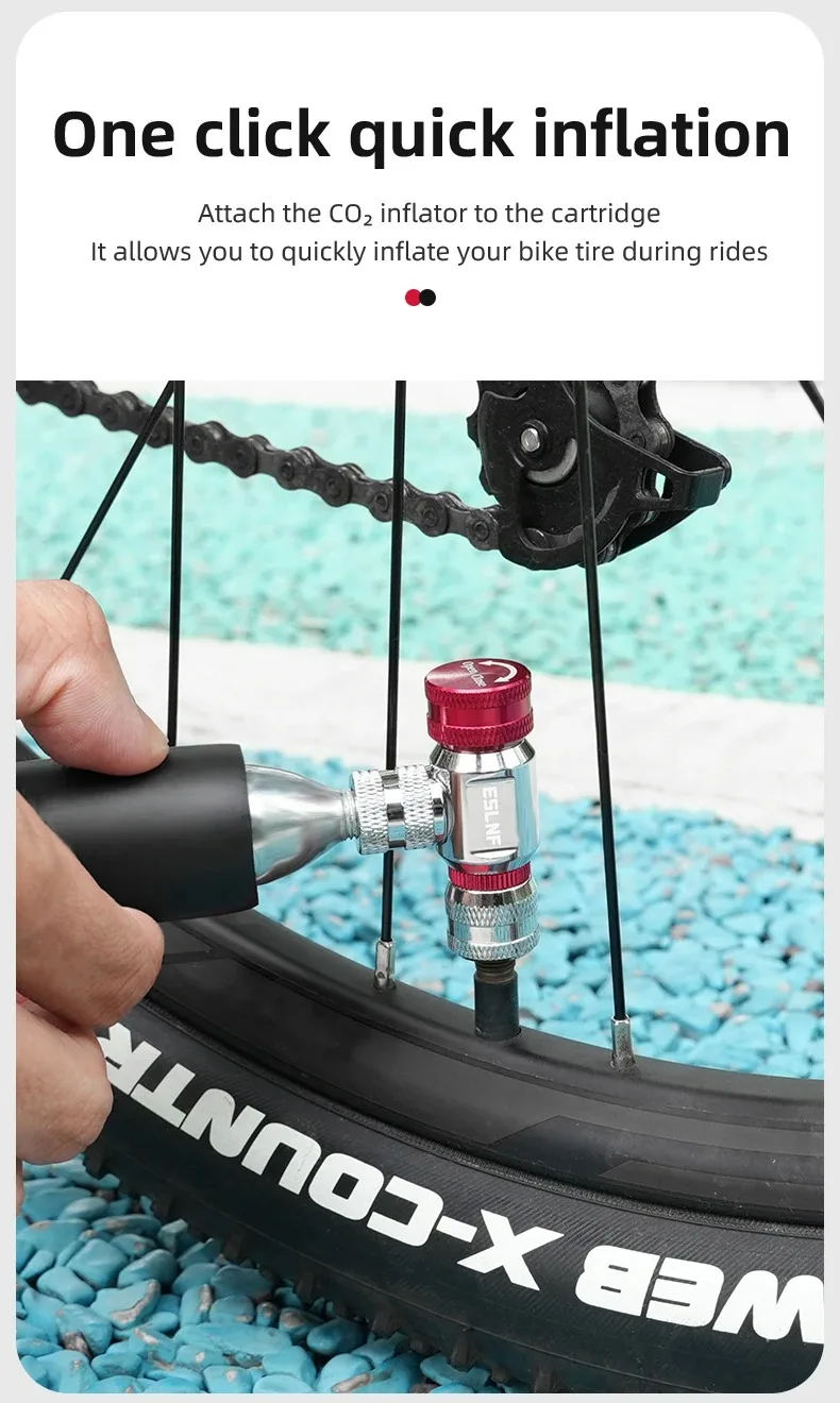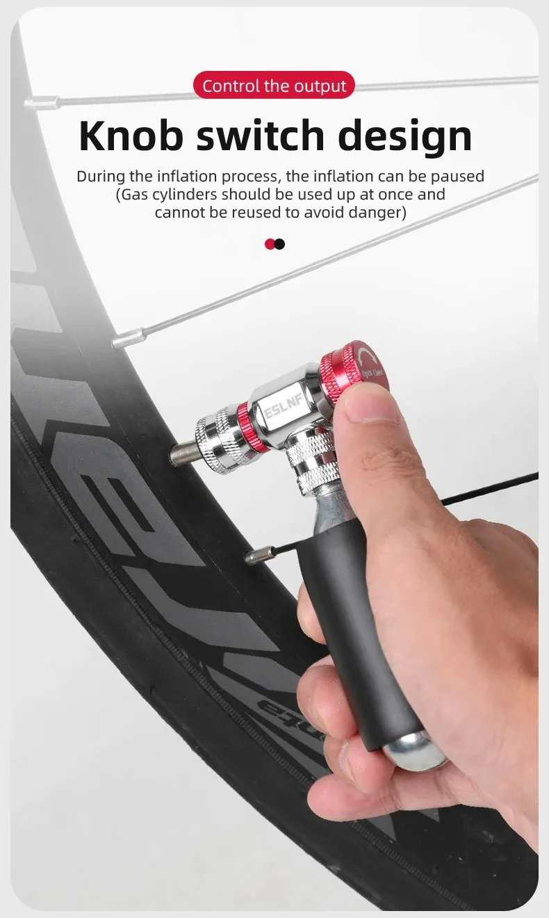 The Mini Bicycle CO2 Pump is designed for easy portability, making it perfect for on-the-go inflation of your bike tires.