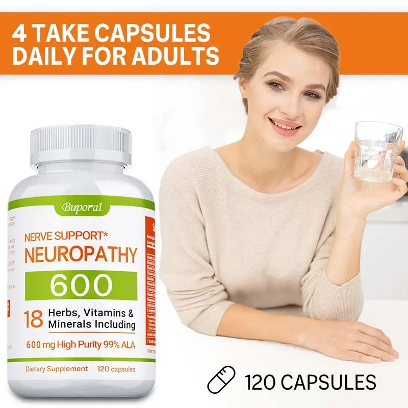 Neuropathy Support Supplement 600mg - Antioxidant, Promotes Nerve Health, Cellular Energy, Metabolism and Anti-aging, Non-GMO