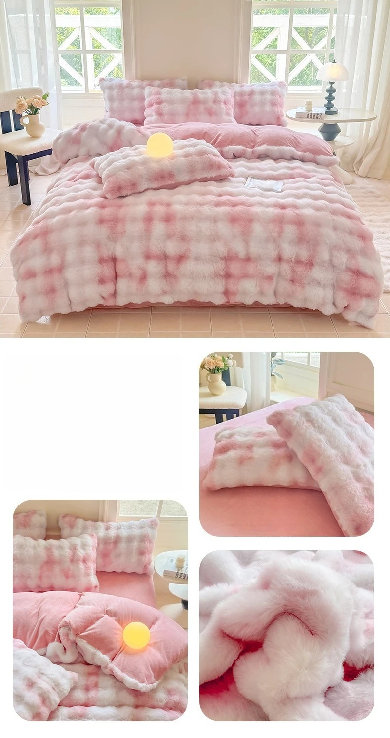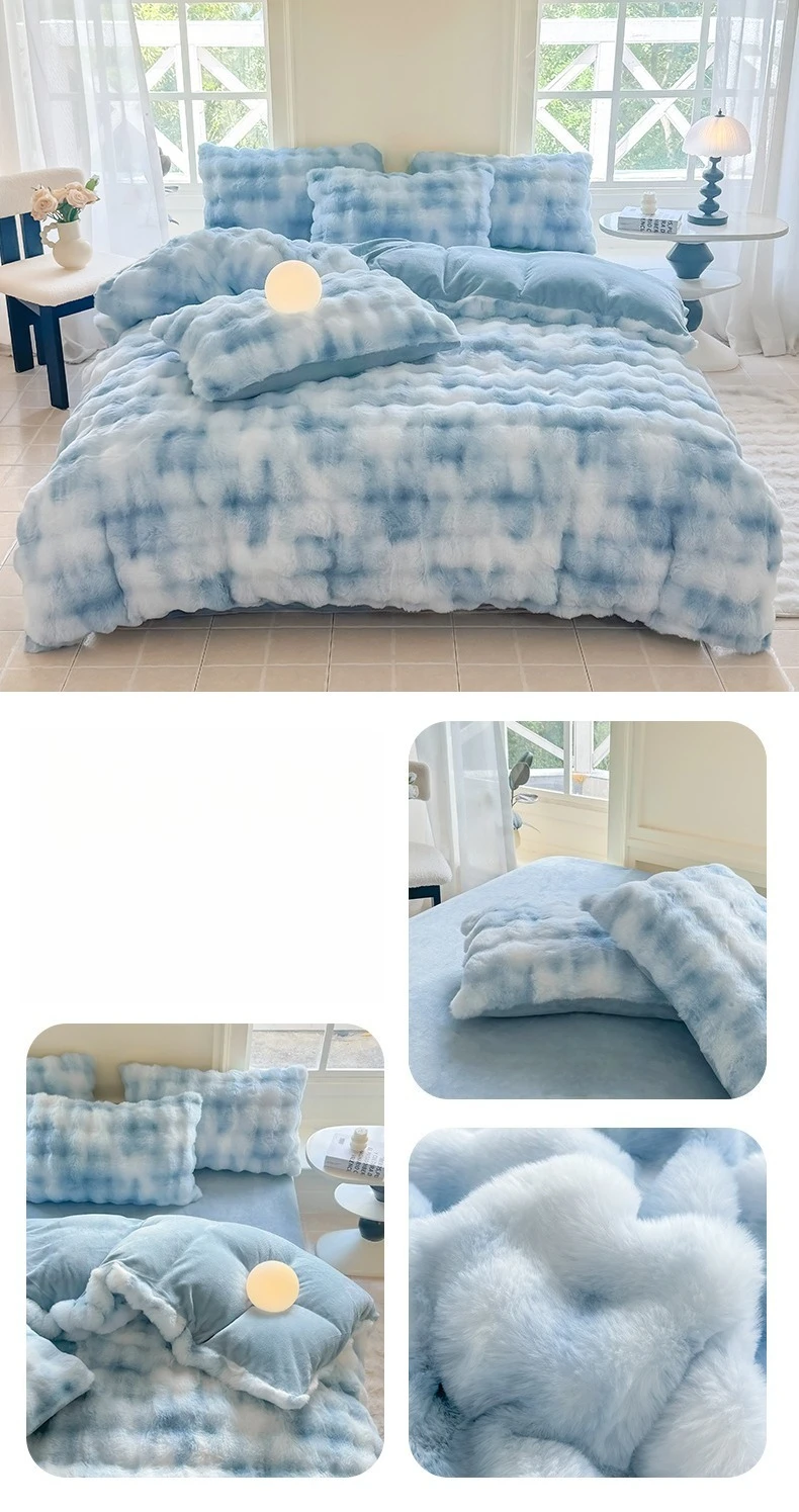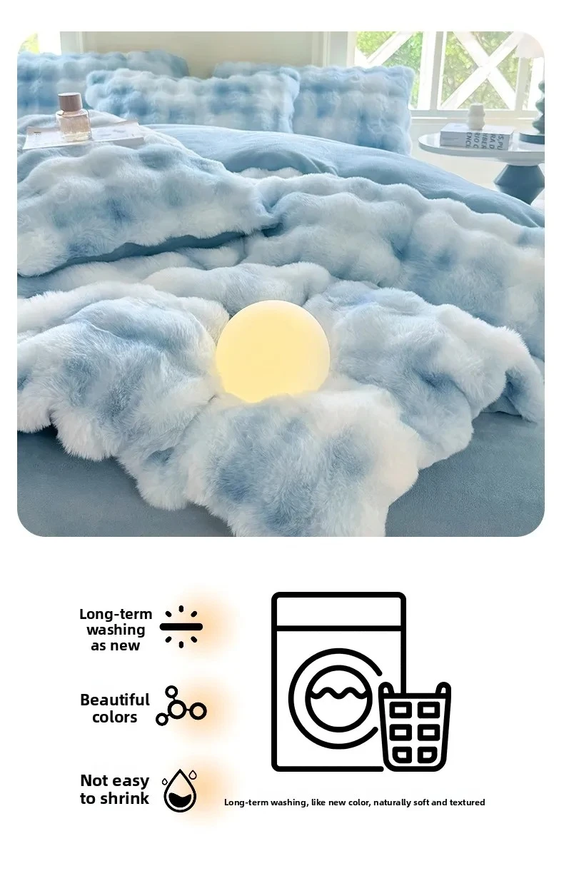 New Rabbit Fur Thickened Milk Velvet Duvet Cover Set Machine Washable Soft SkinFriendly Warm Bed Sheet for Home and Hotel 침구 풀세트