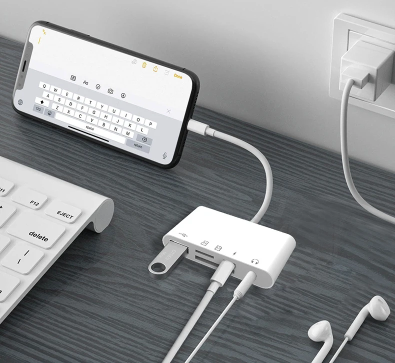 1. Multifunctional design: The 5-in-1 Lightning/USB-C docking station has multiple functions, including card reading, charging and listening to music, etc. It can meet the needs of different scenarios.