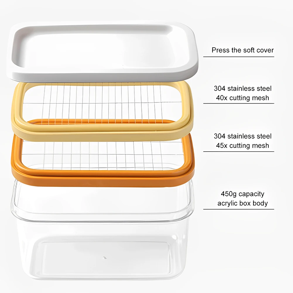 1. Versatile Utility Box: This multifunctional butter dish is for storing butter, cheese, and other ingredients. It includes a built-in cutting tool for convenient access to just the right amount of food, catering to both baking and everyday cooking needs with ease.