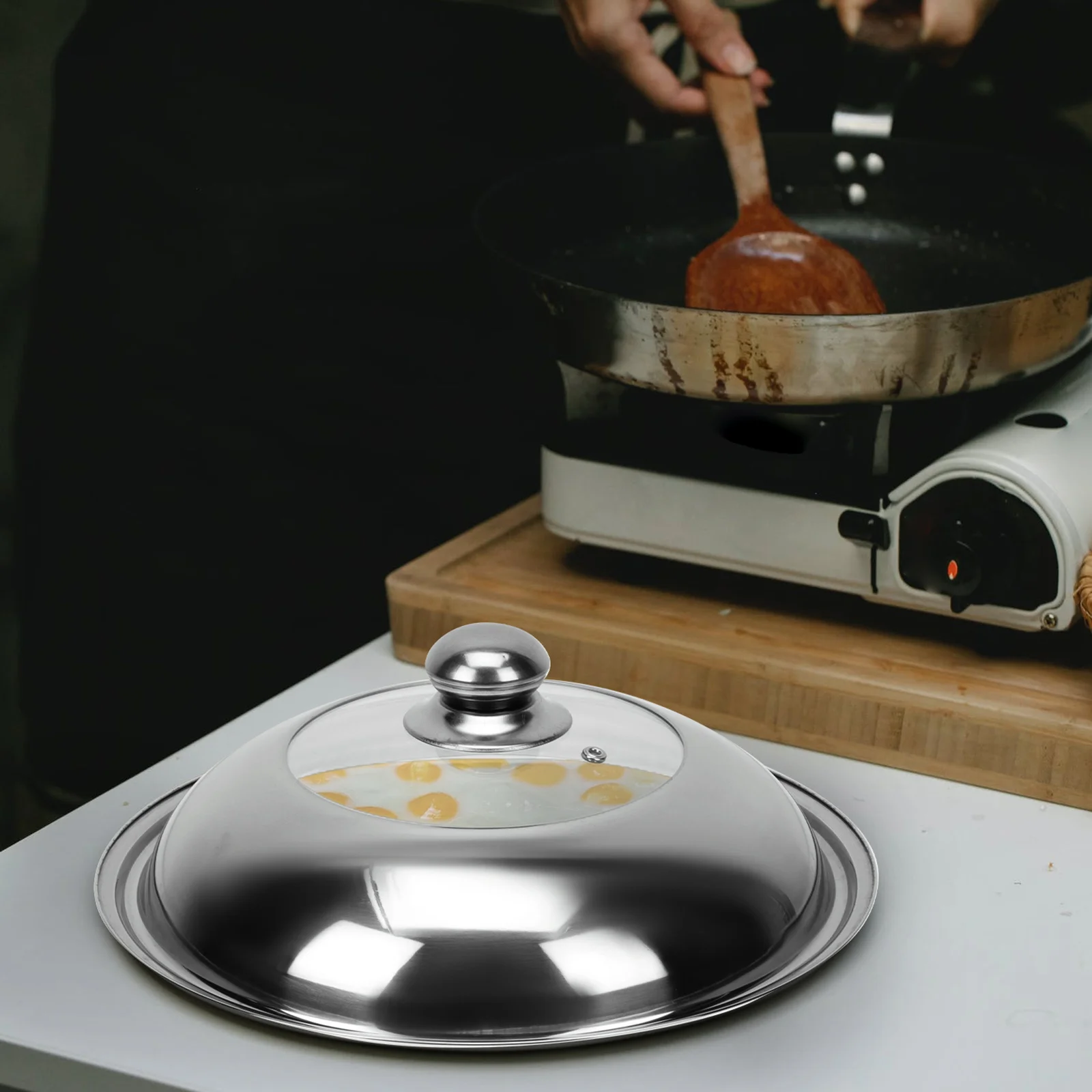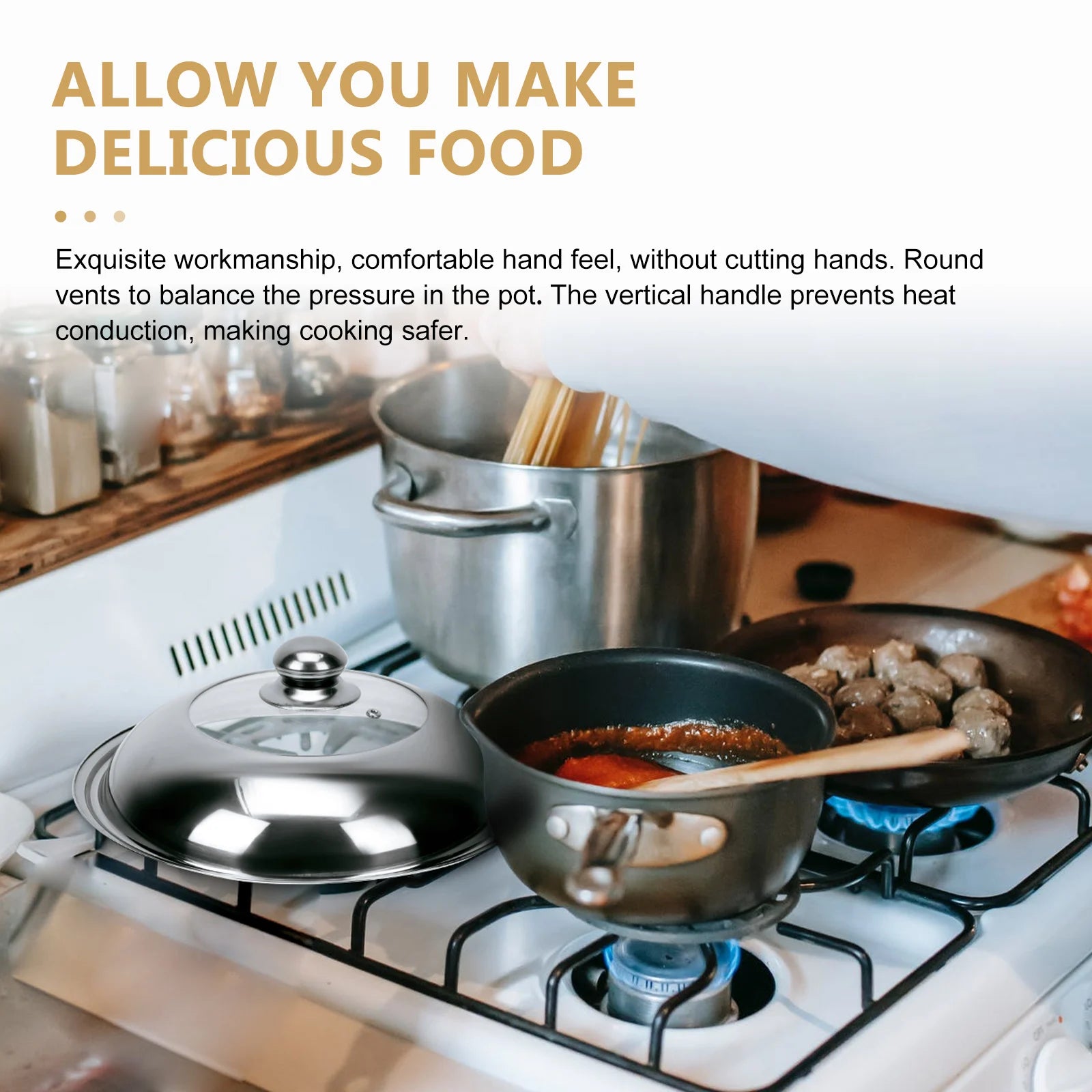 Stainless Steel Pot Lid With Clear Tempered Glass Cover Anti-Scald Vent Universal Fit For Cookware Kitchen Gadget Cooking Pot