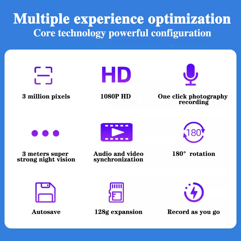 • High definition 1080P camera: Utilizing the body's miniature camera's 1080P full HD support to capture high-quality videos, ensuring that every detail is clear and visible.