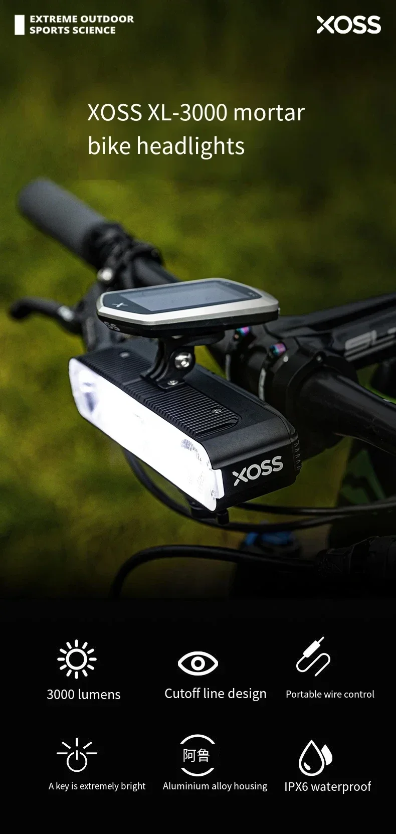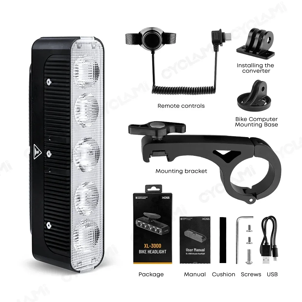 XOSS Bike Light Highlight 3000LM Bicycle Front Light Type-C MTB Road Bike Handlebar Flashlight Bicycle Accessories